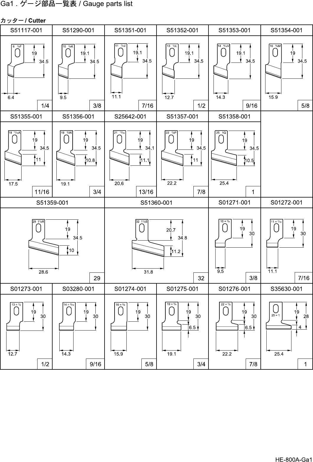 - Ga1. Gauge parts list