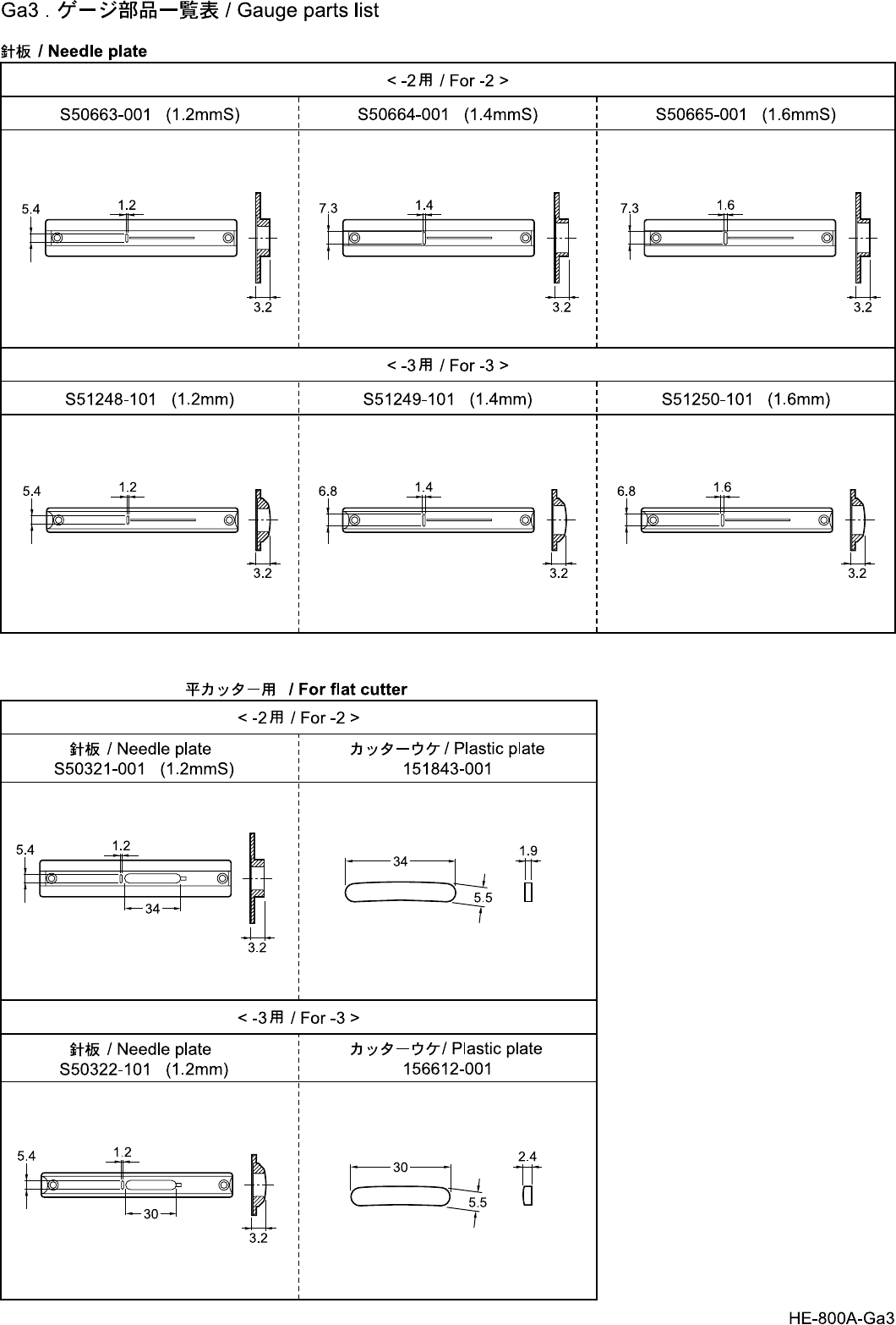 - Ga3. Gauge parts list
