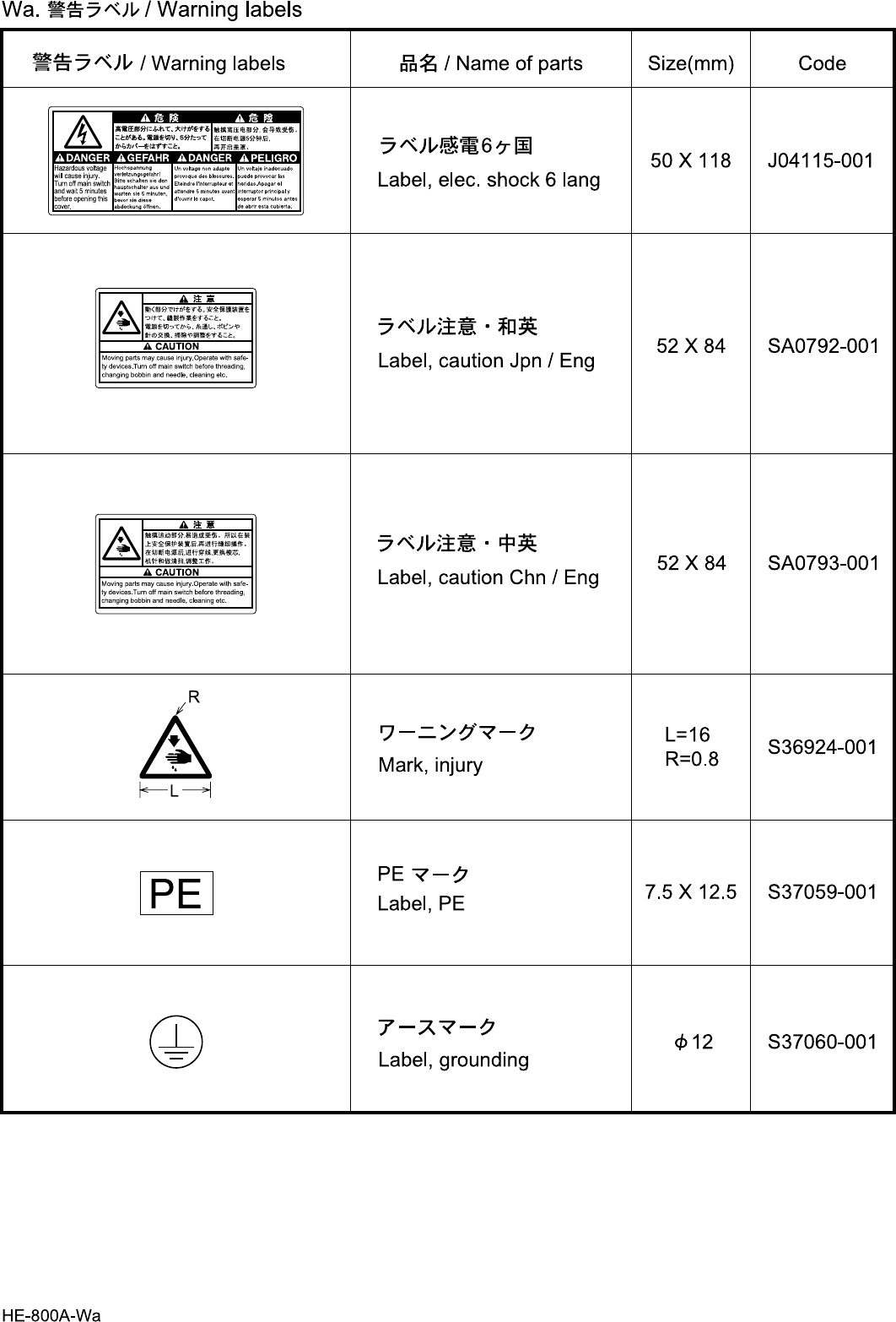 Wa. Warning labels ..................................................