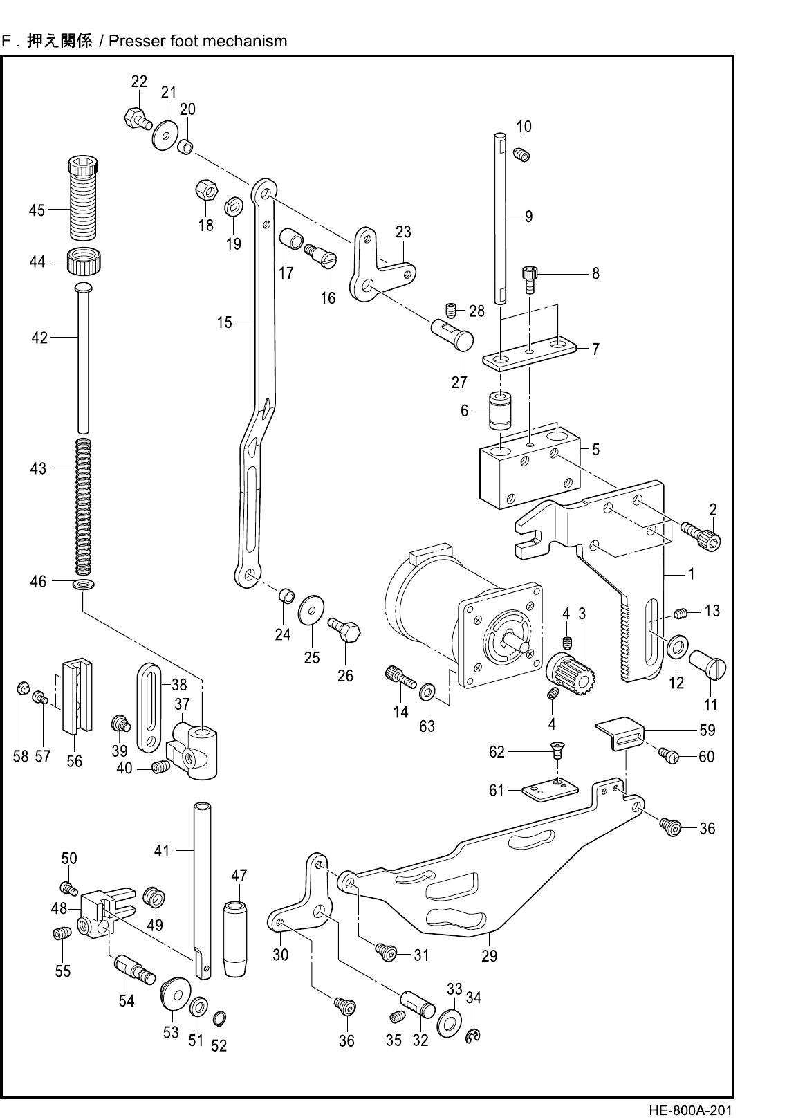 - F. Presser foot mechanism