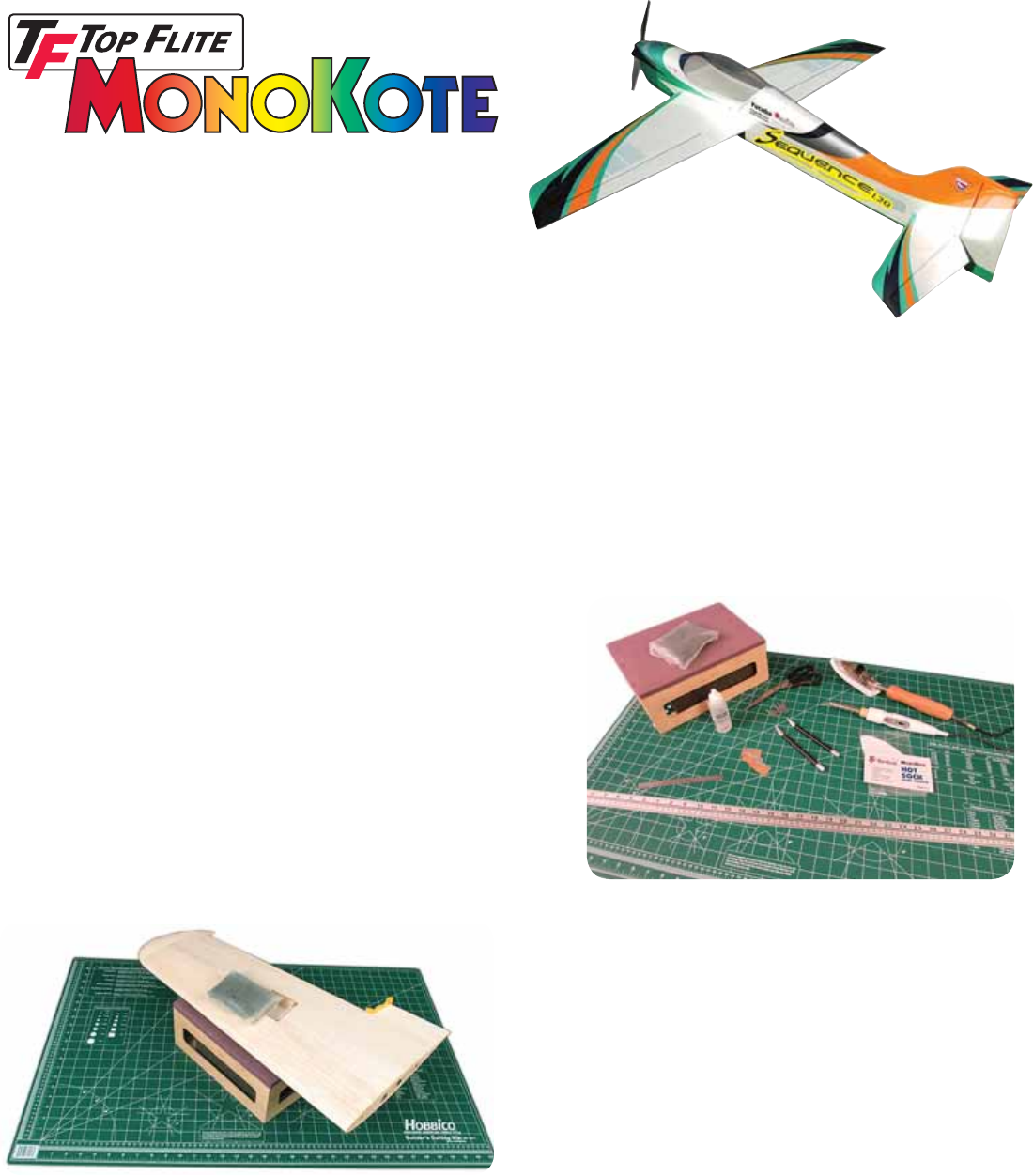 model airplanes. MonoKote is applied with a Top Flite sealing iron. Heat from the iron shrinks