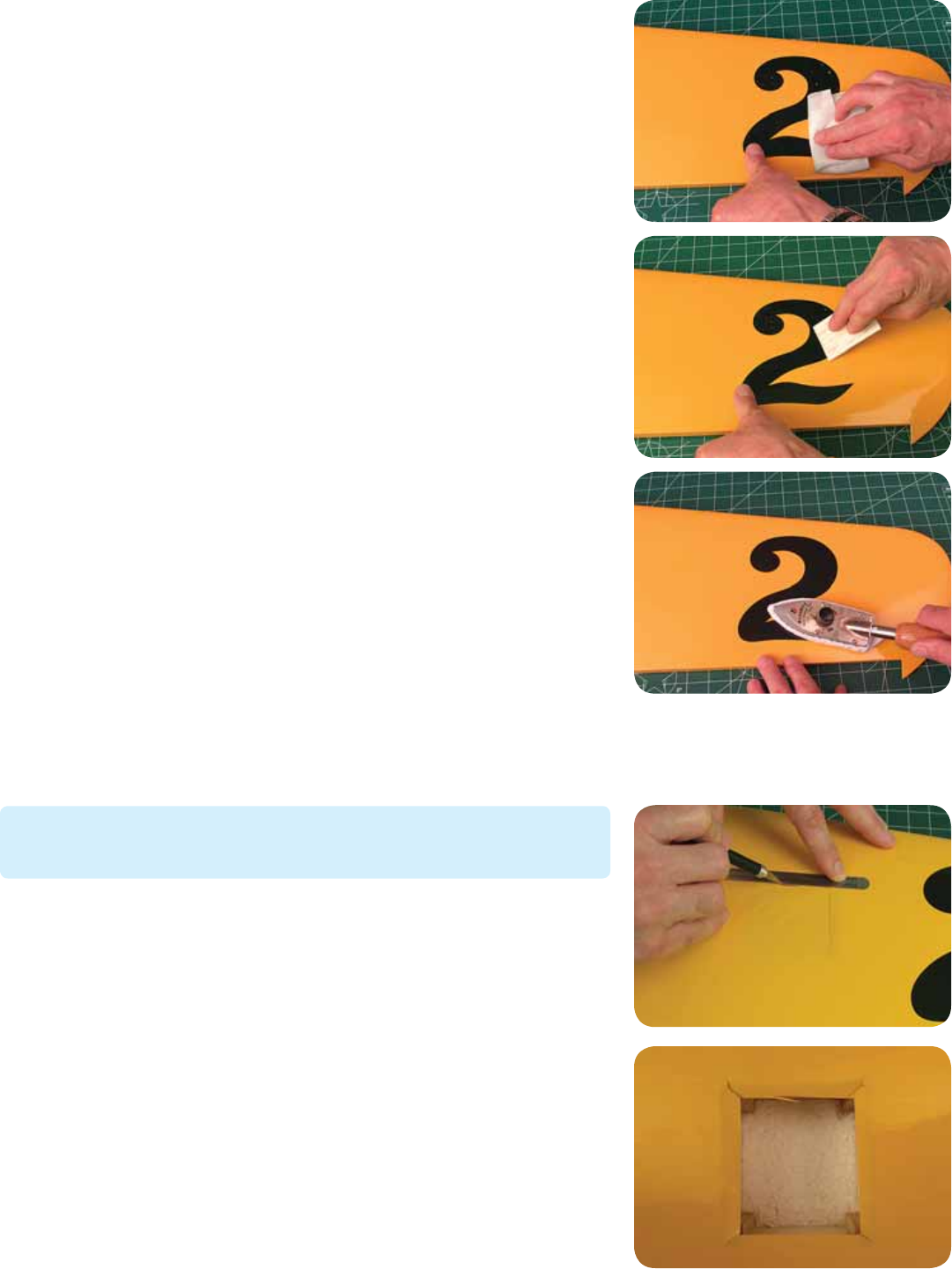 6. For the aileron hatch cover, iron a piece of oversize covering into place.