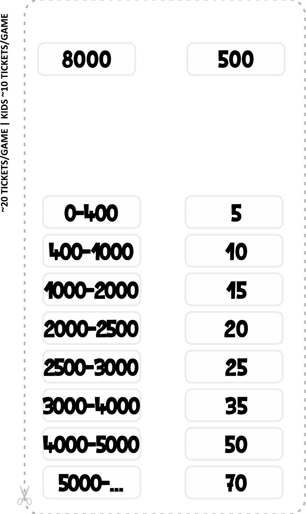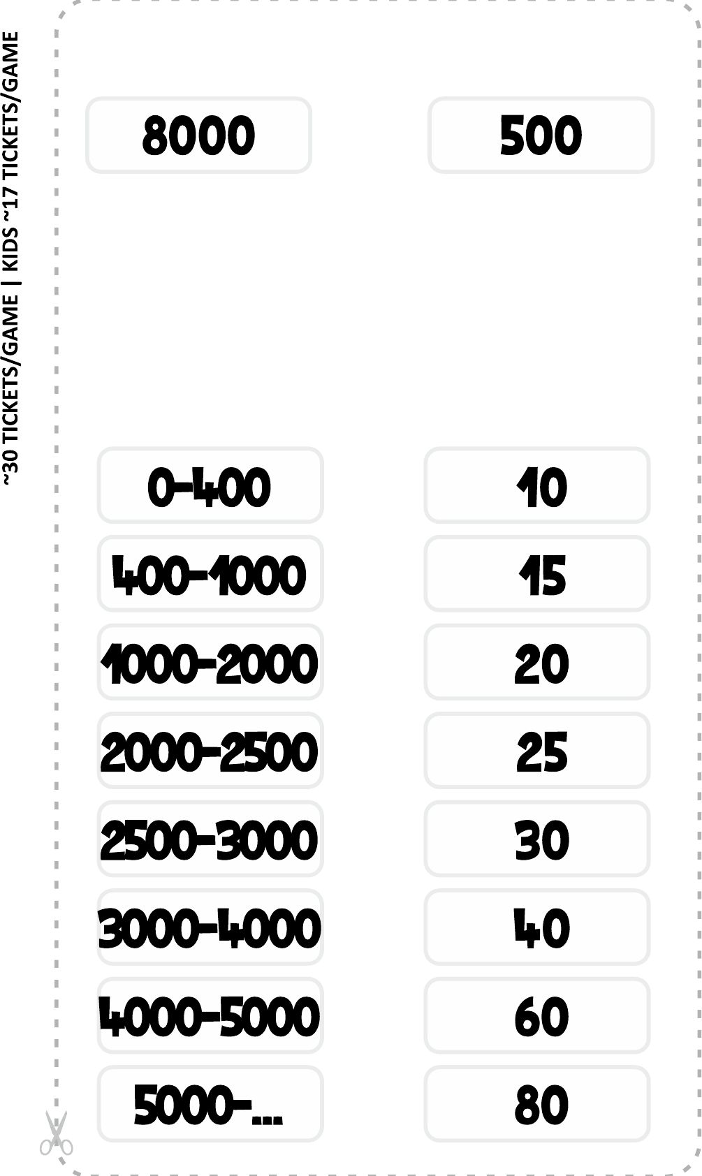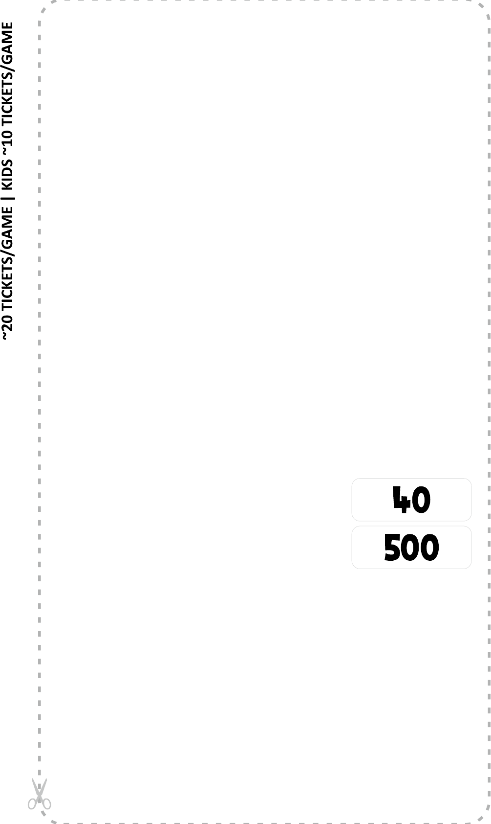 ~60 TICKETS/GAME | KIDS ~45 TICKETS/GAME