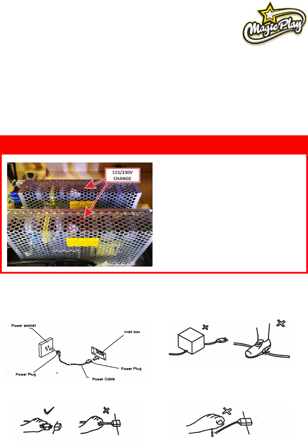 electric shock or personal injury. Unplug the game from the outlet when not in use, when moving from one