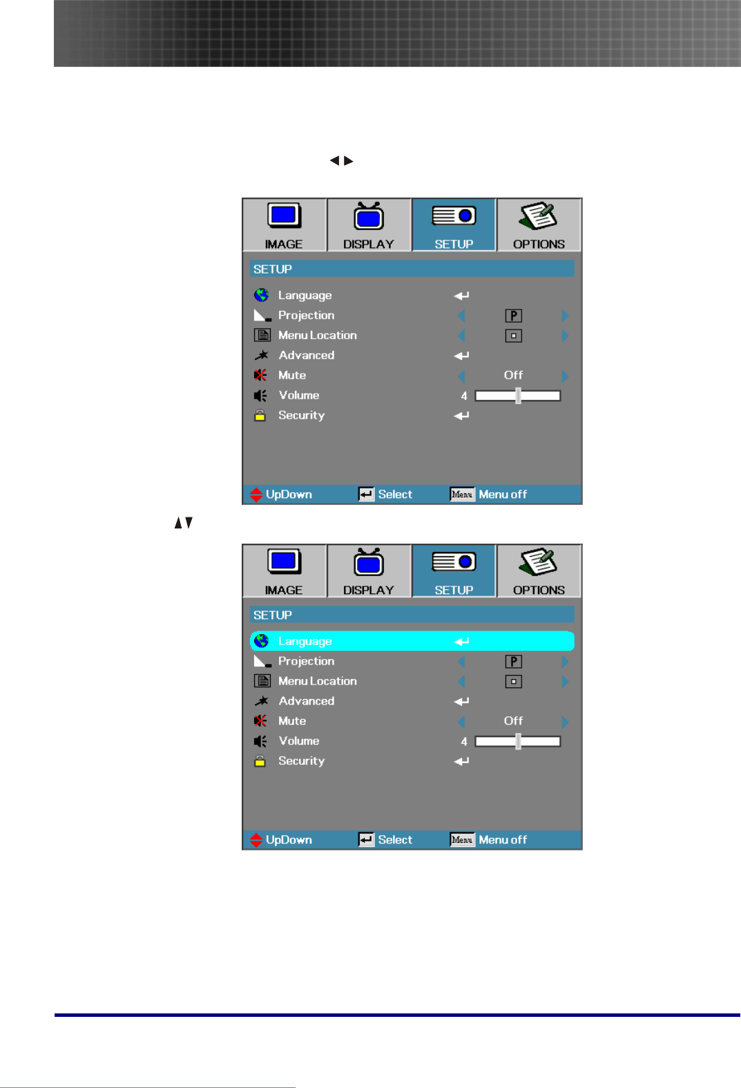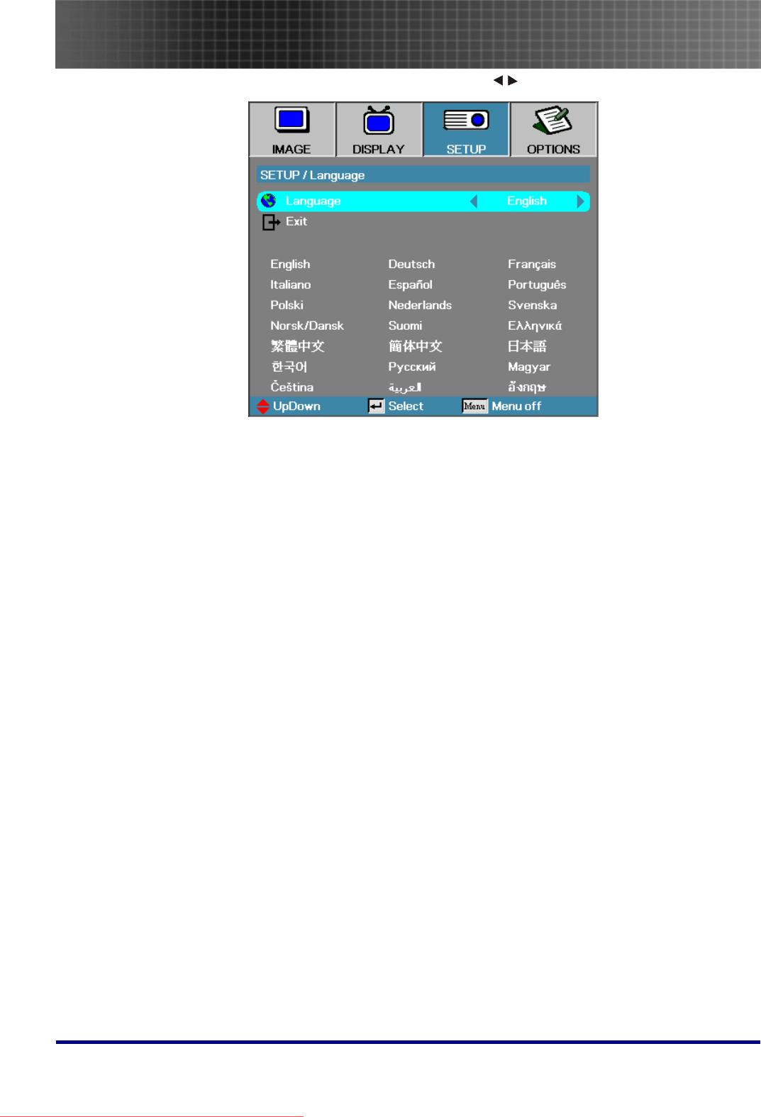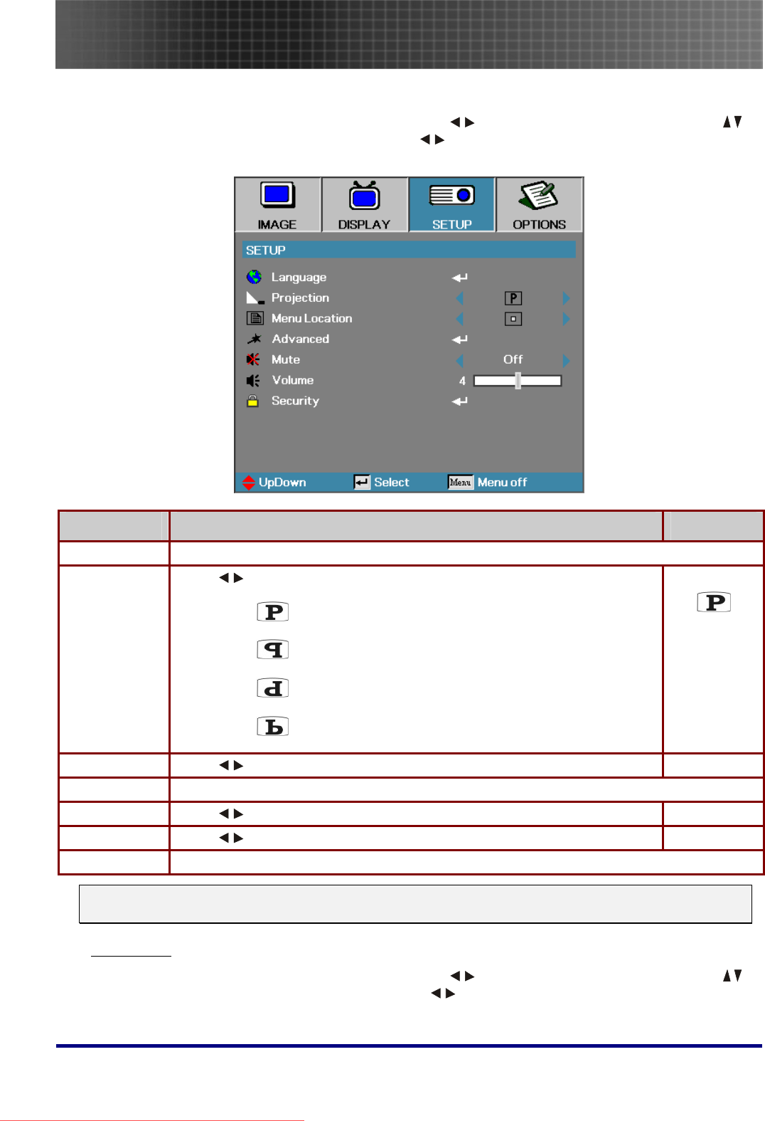 - Setup Menu