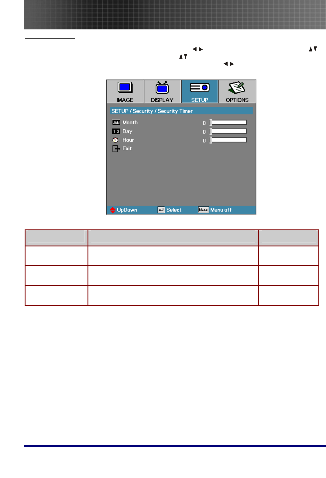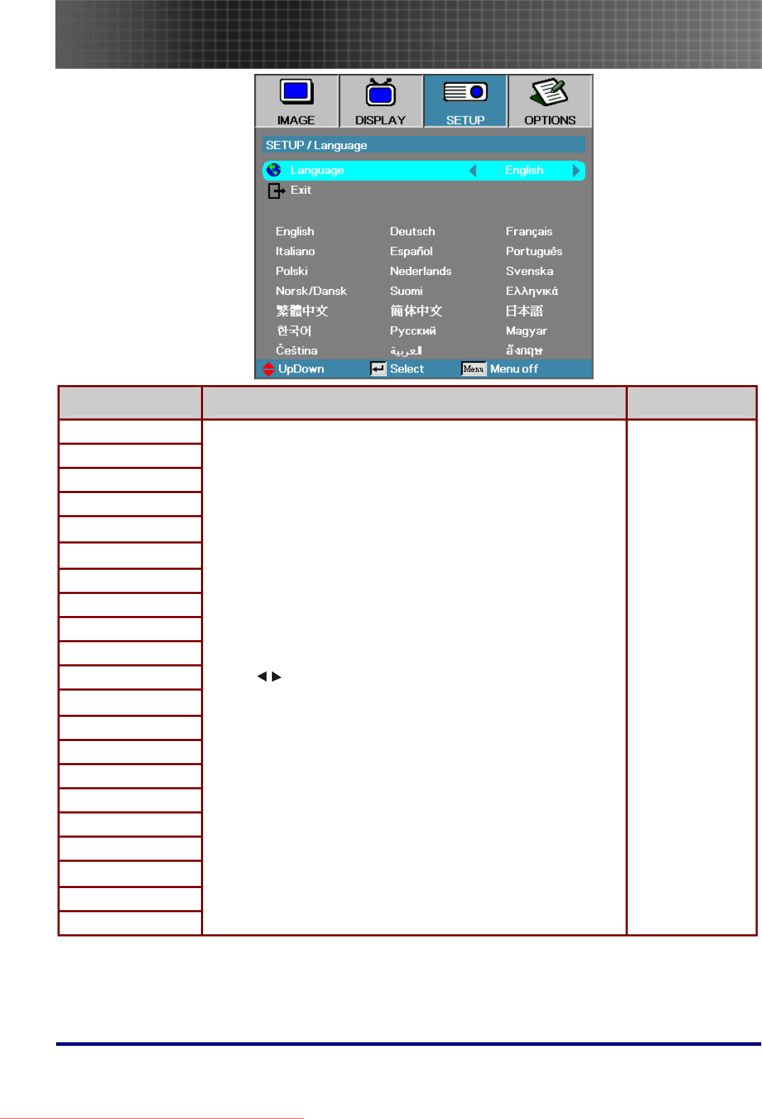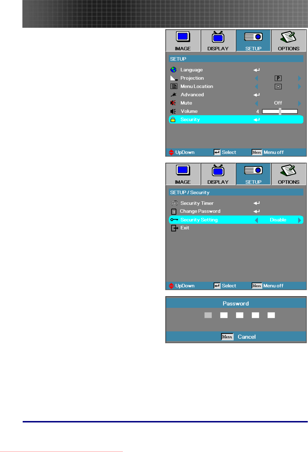 - Setup Menu
