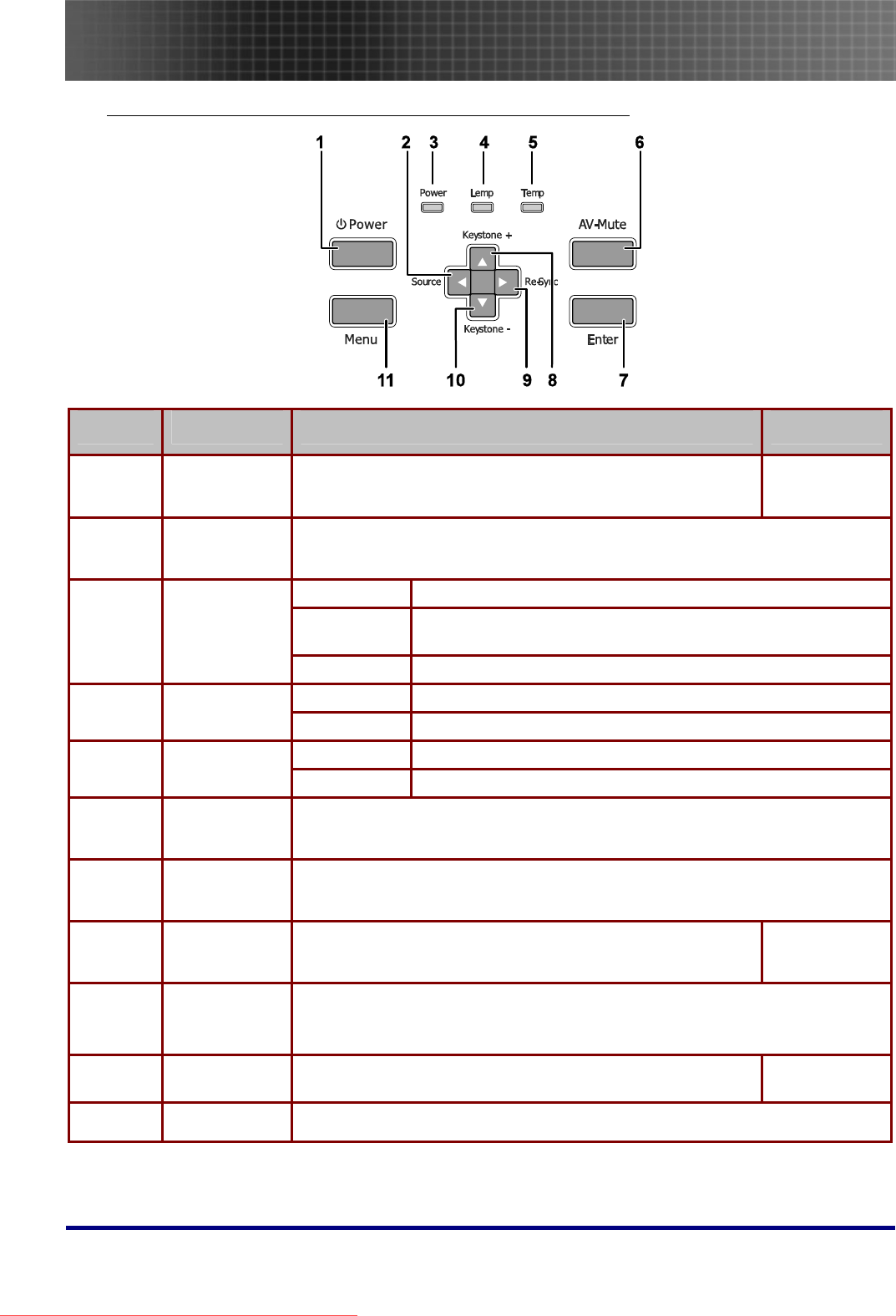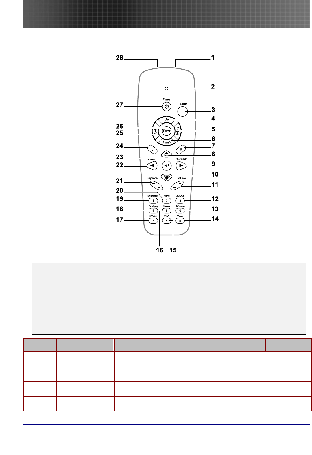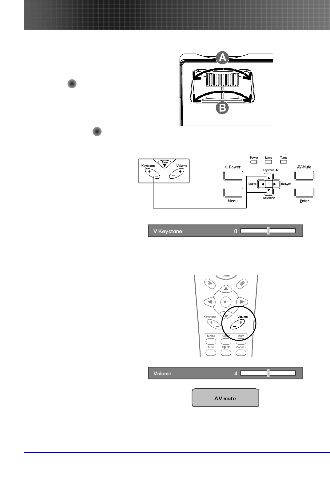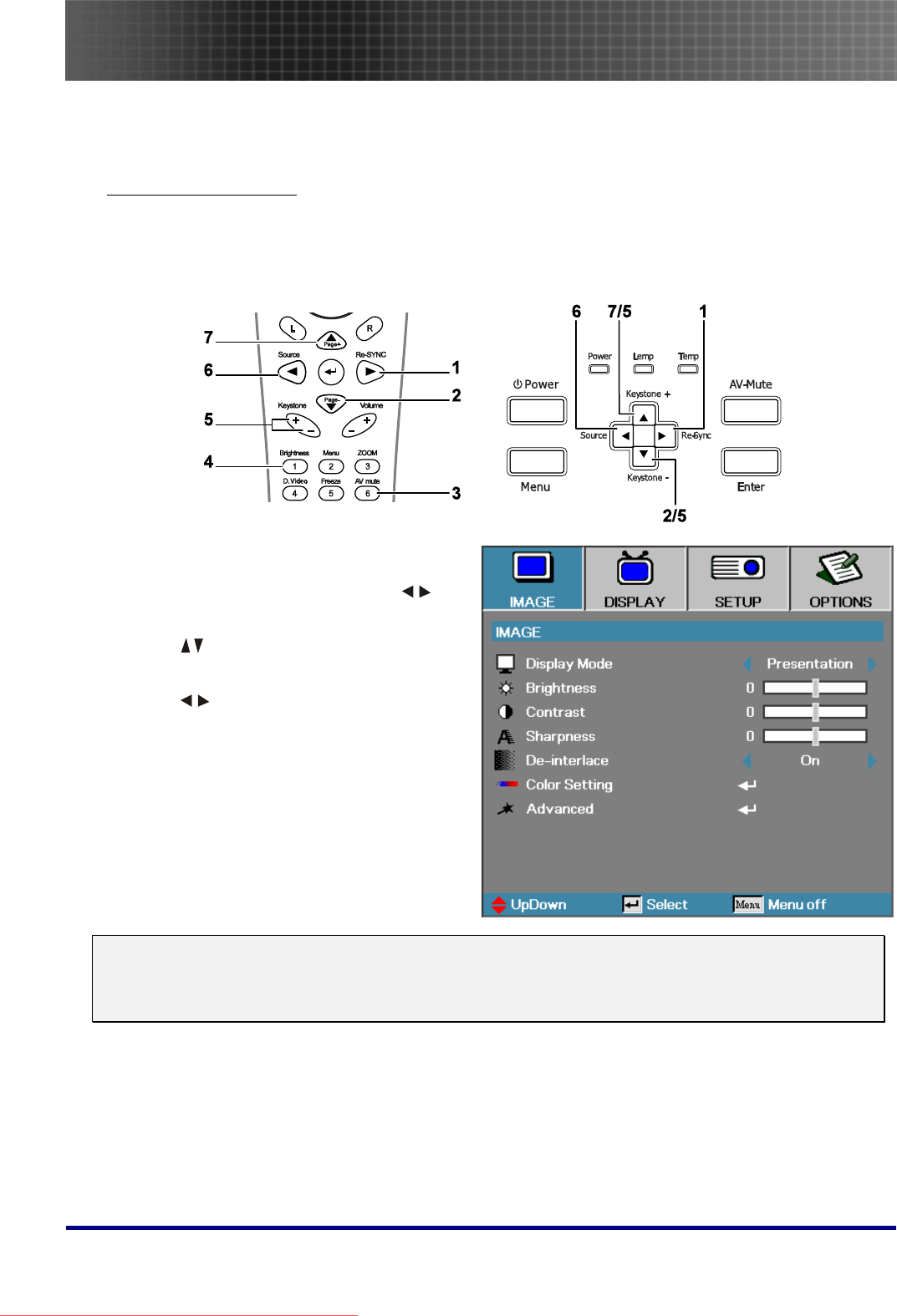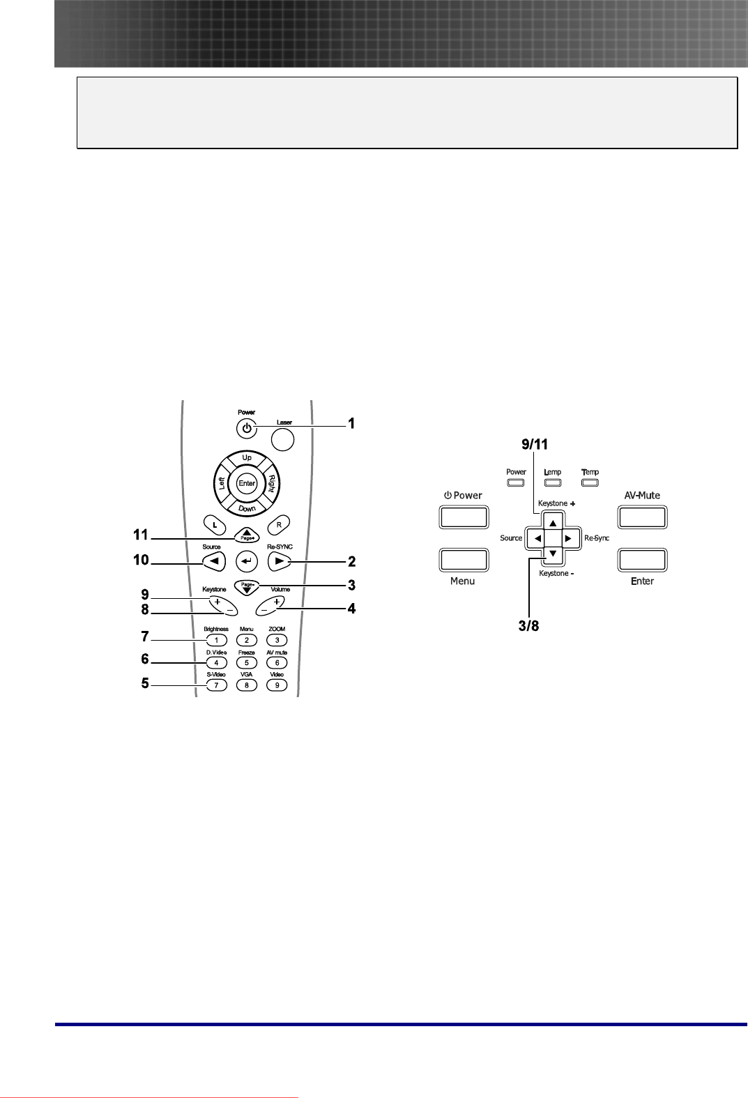 - Projector and Remote Control Buttons