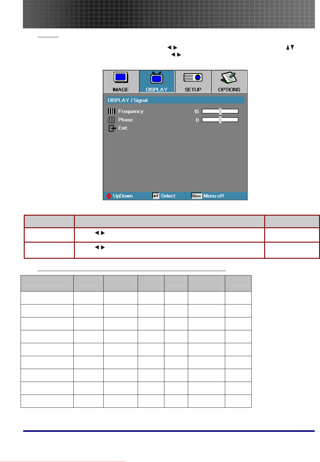- Display Menu