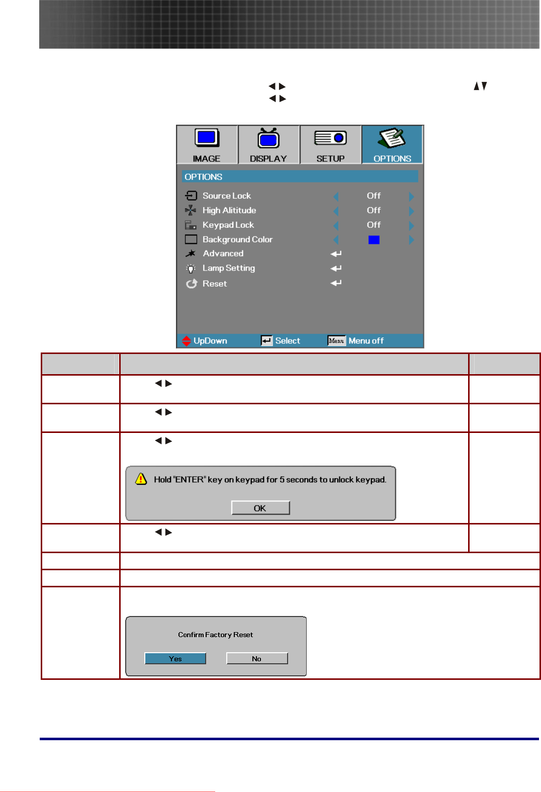 - Options Menu