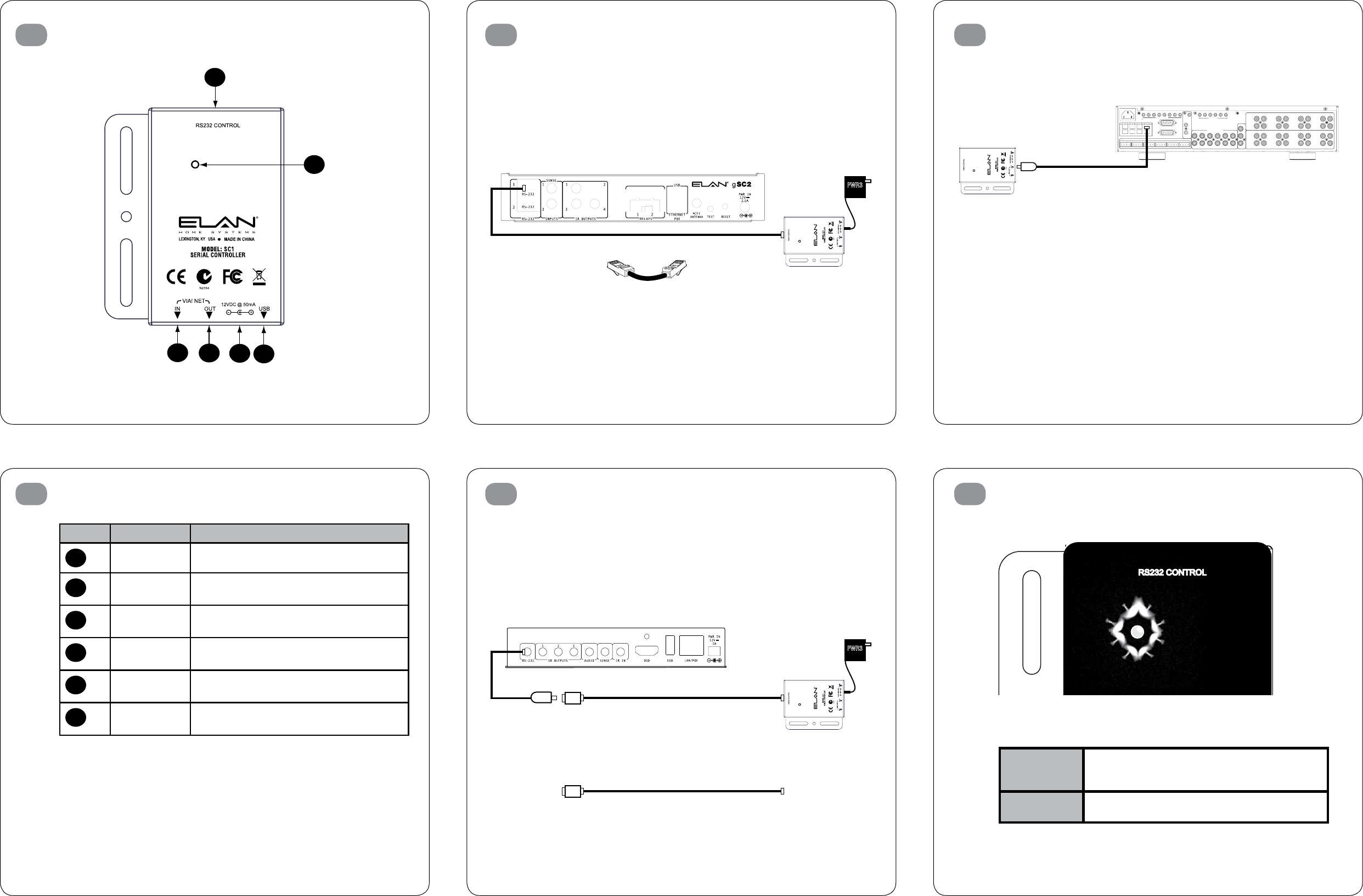 Connecting the ELAN SC-1 to the serial port of a gSC2, gSC10 or g1 System Controller.