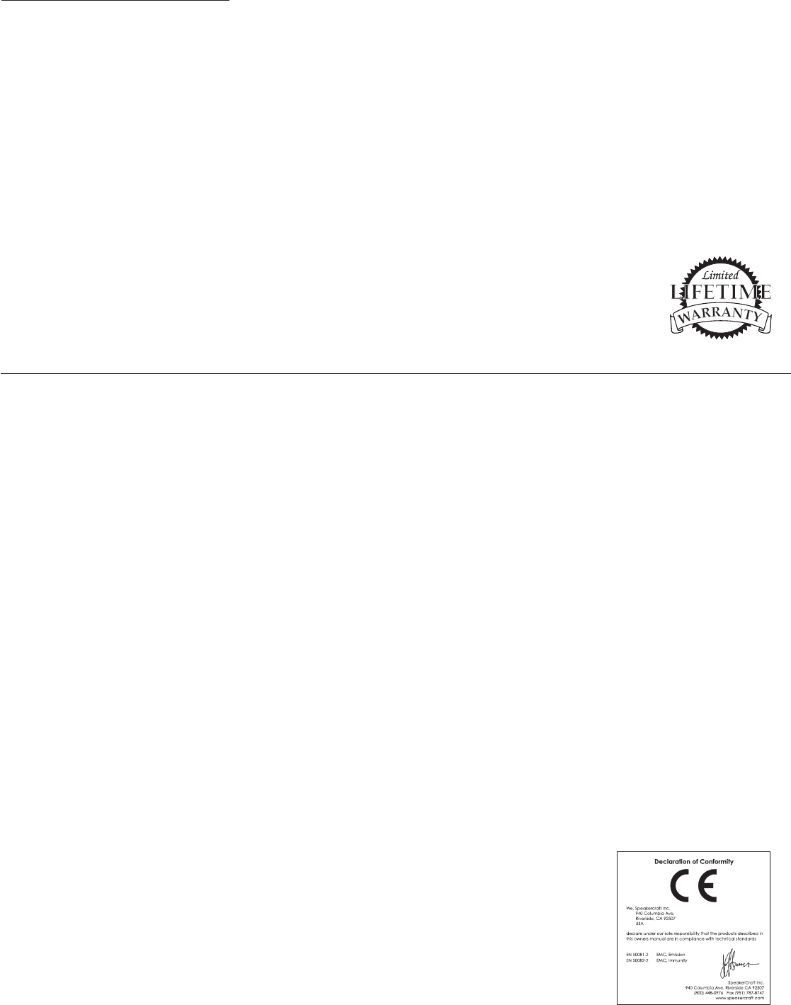SpeakerCraft Inc. warrants to the original retail purchaser only that this SpeakerCraft product will be free from defects in materials and workmanship, pro-