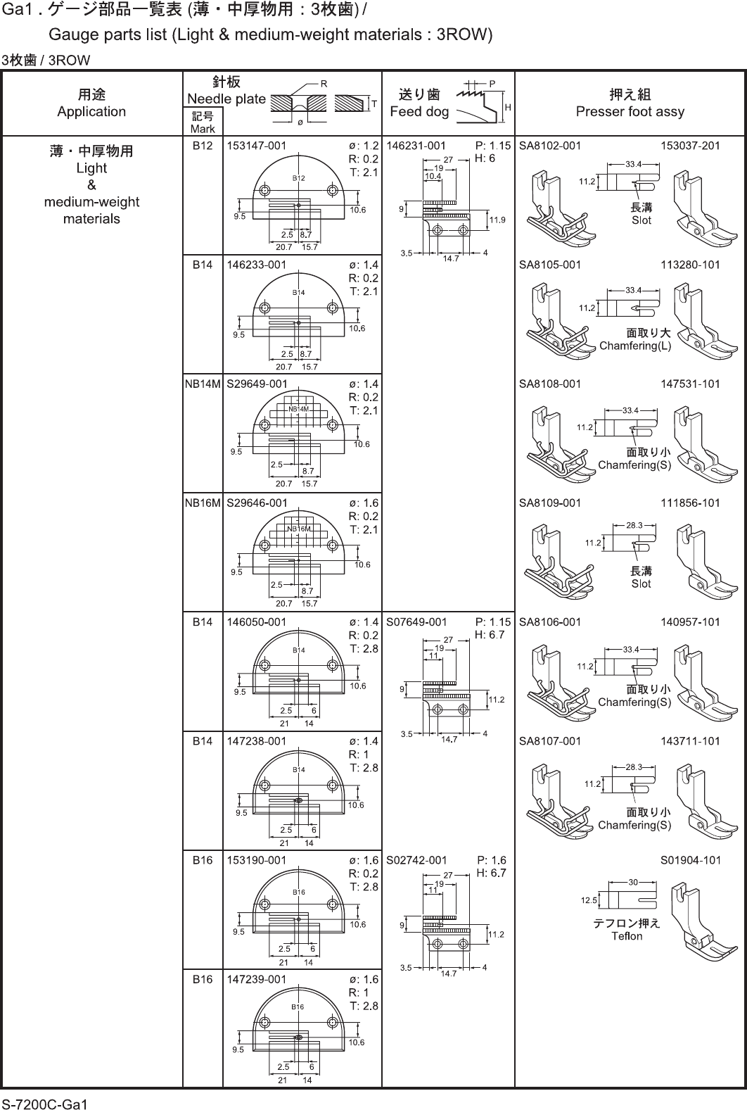 - Ga1. Gauge parts list (Light & medium-weight materials : 3ROW)