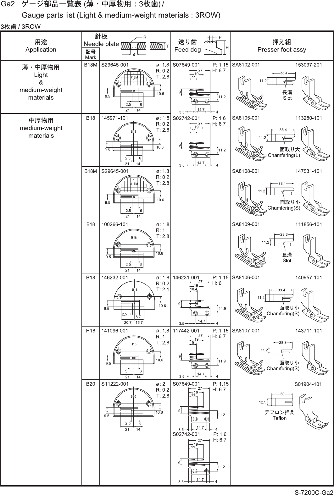 - Ga2. Gauge parts list (Light & medium-weight materials : 3ROW)