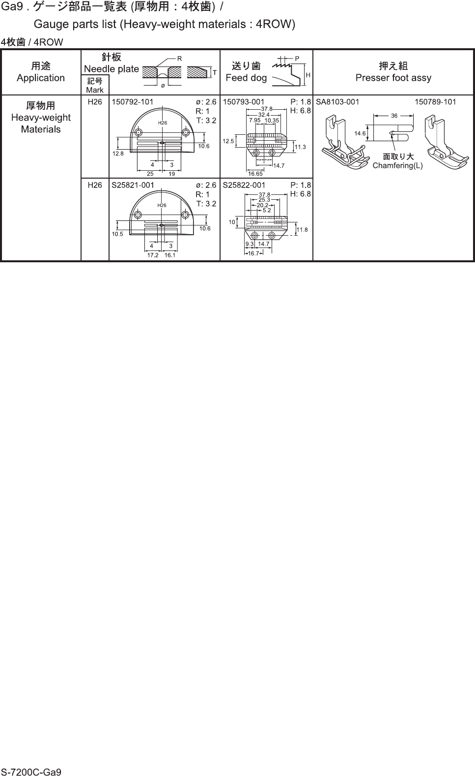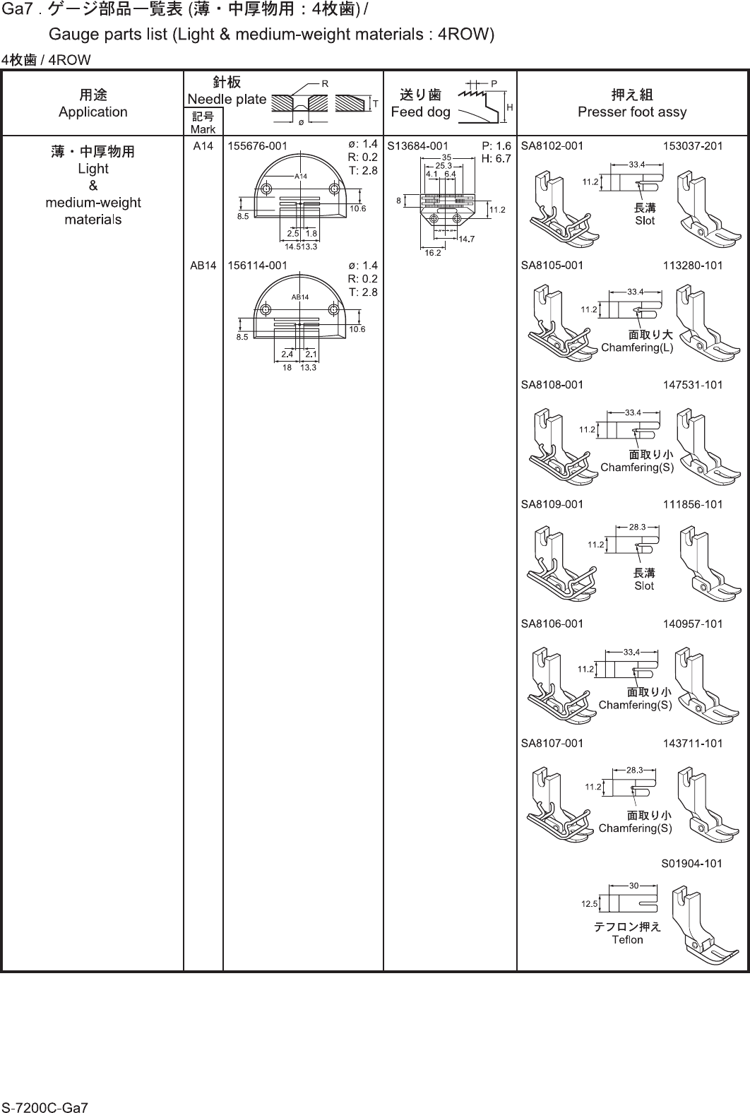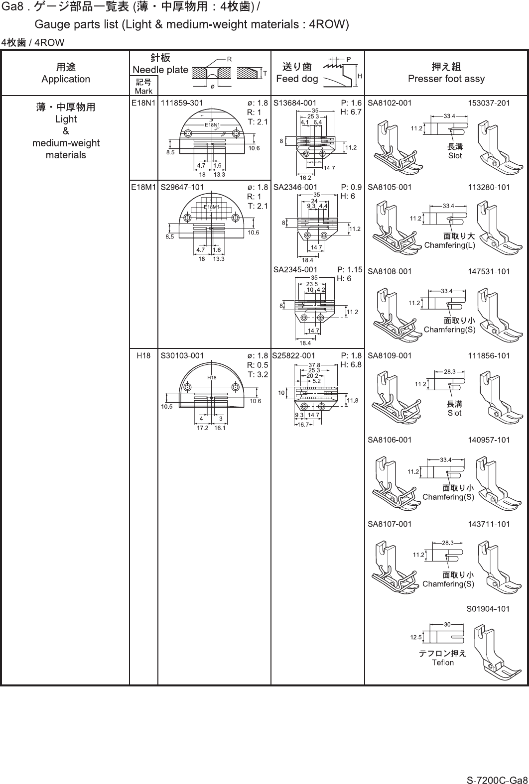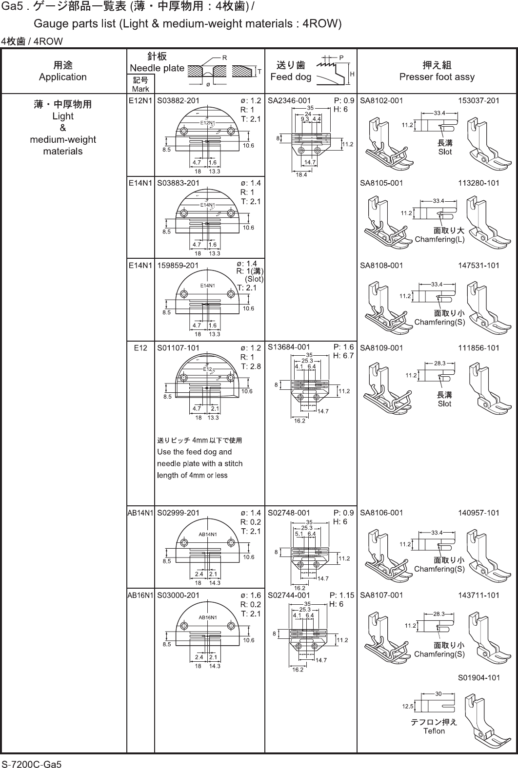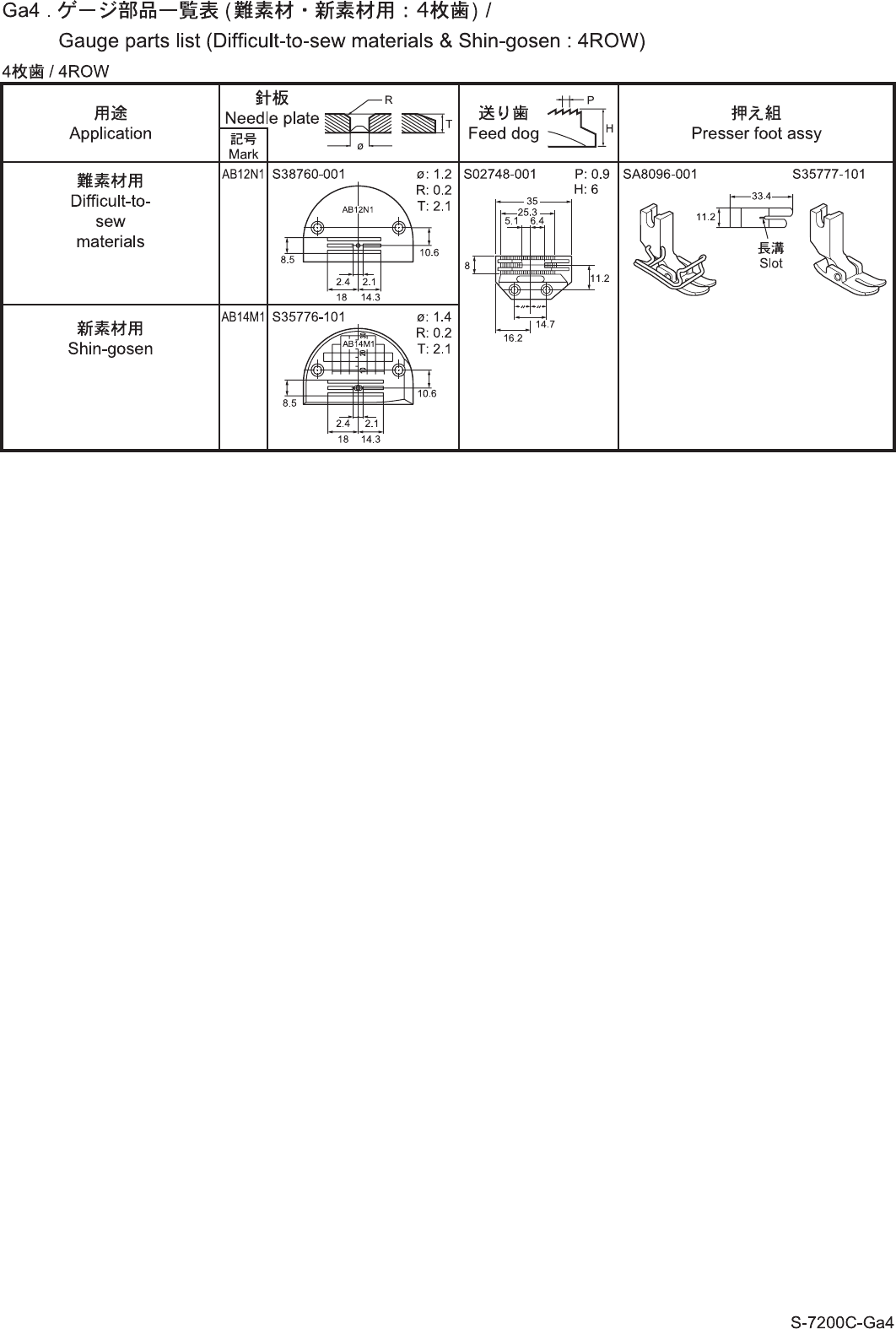 - Ga4. Gauge parts list (Difficult-to-sew materials & Shin-gosen : 4ROW)
