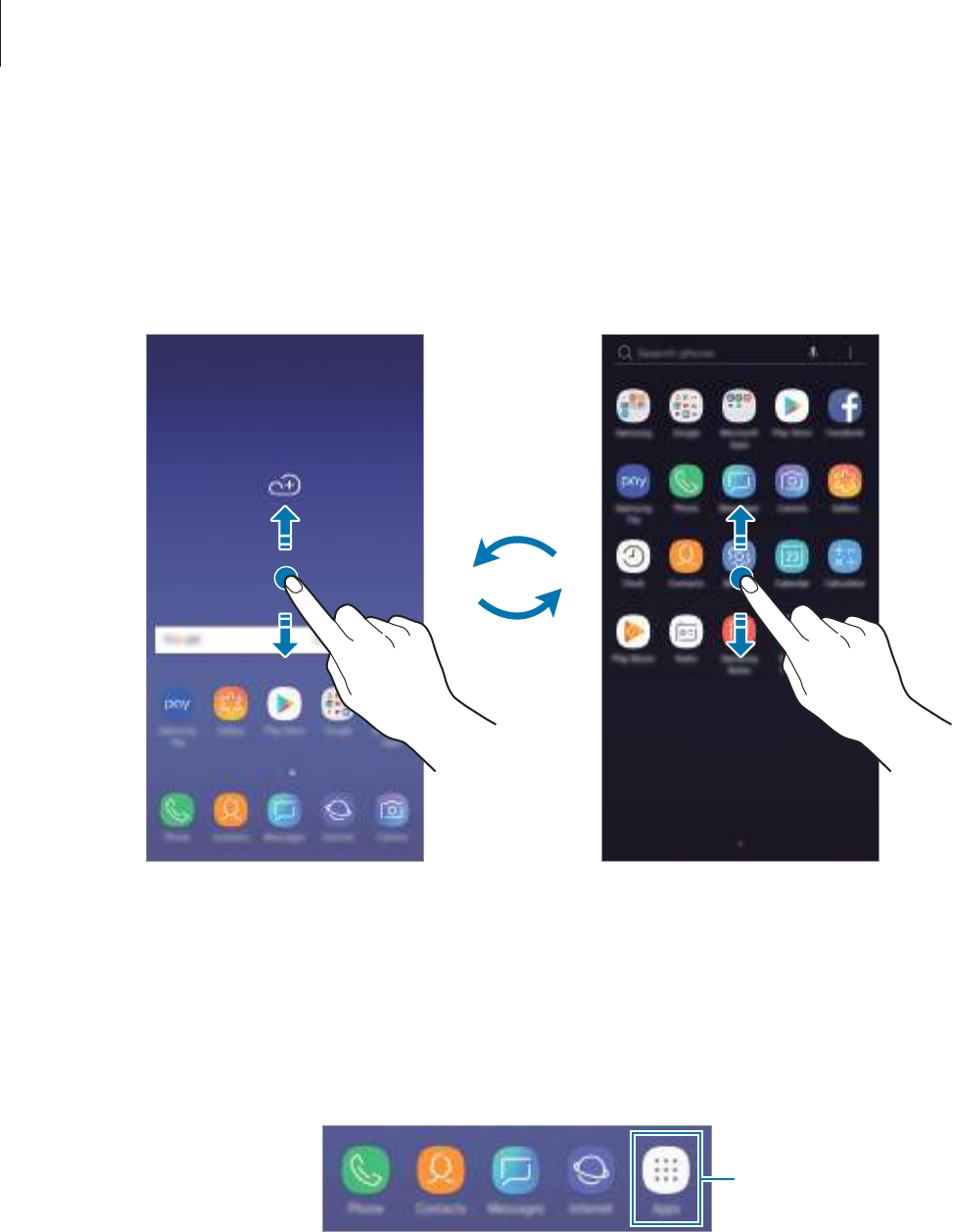 Without using the Apps button, you can open the Apps screen by swiping upwards or
