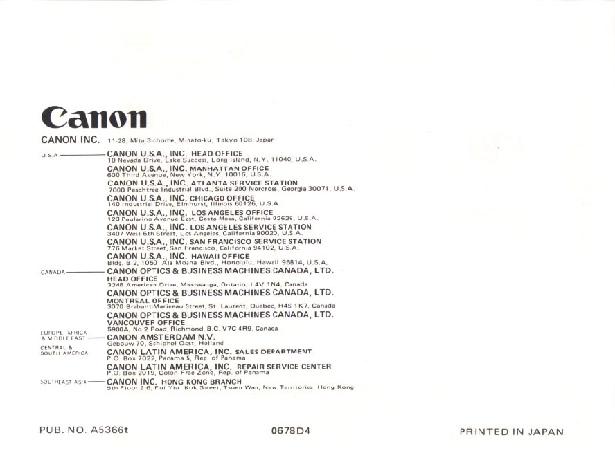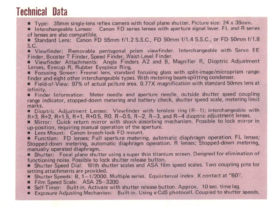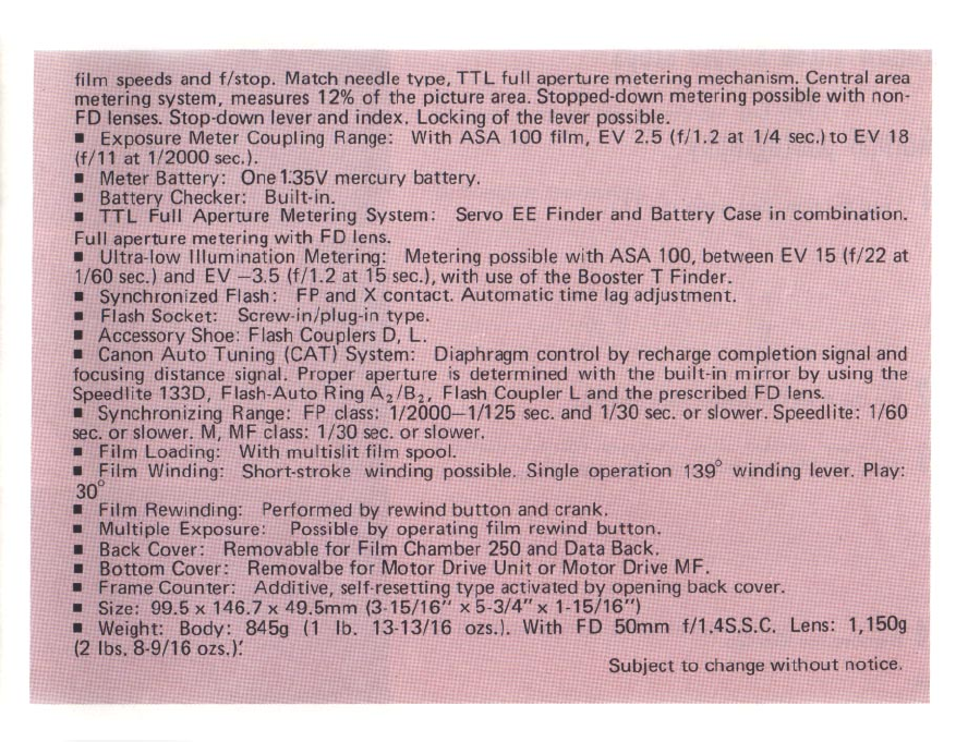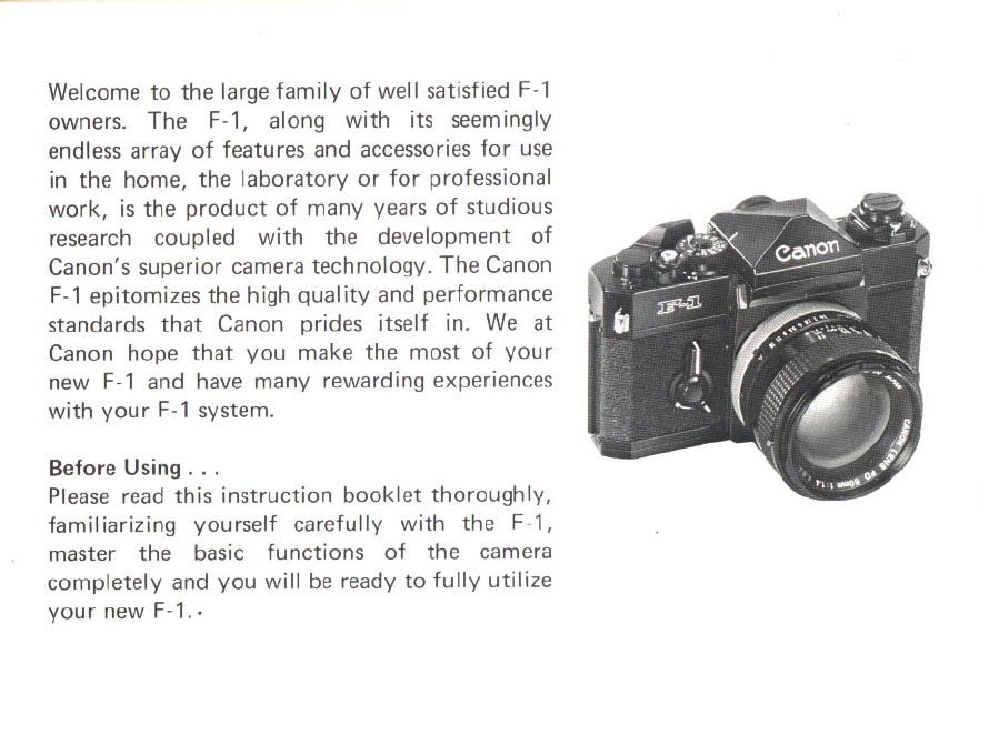 1978 Canon F 1n Instructions F1 Manual