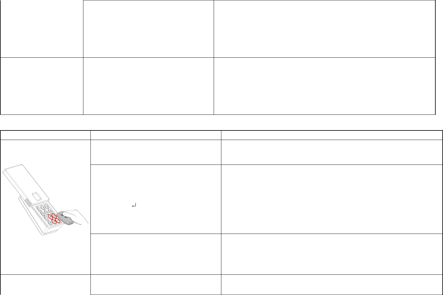 Keypad lights up for 5 secs. All programmed PINs are transmitted, each of the