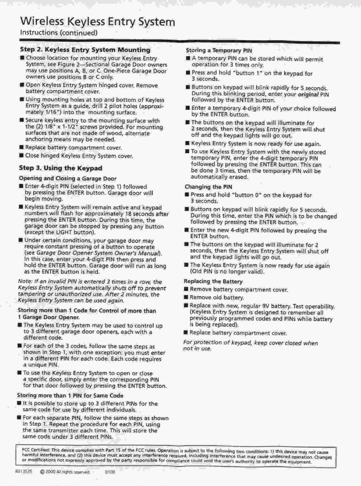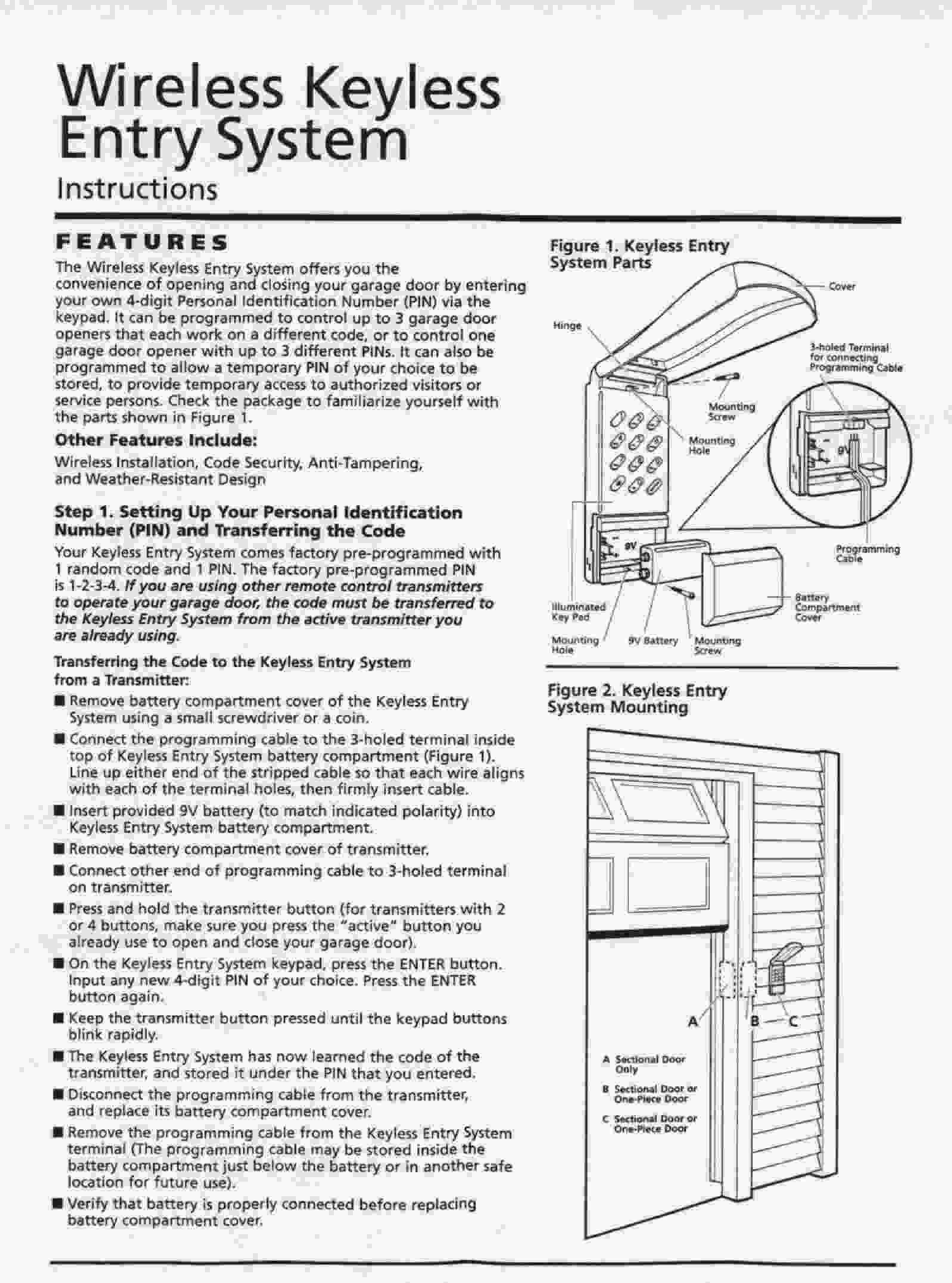 WIRELESS KEYLESS ENTRY SYSTEM OPERATING INSTRUCTIONS
