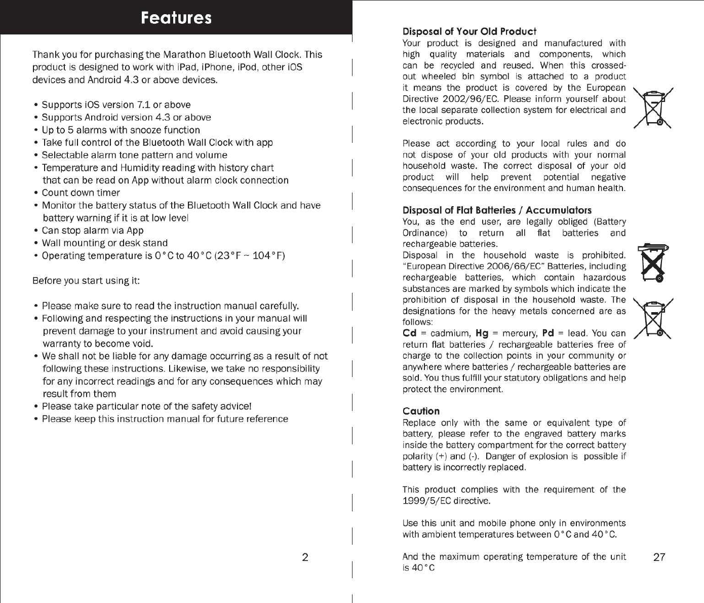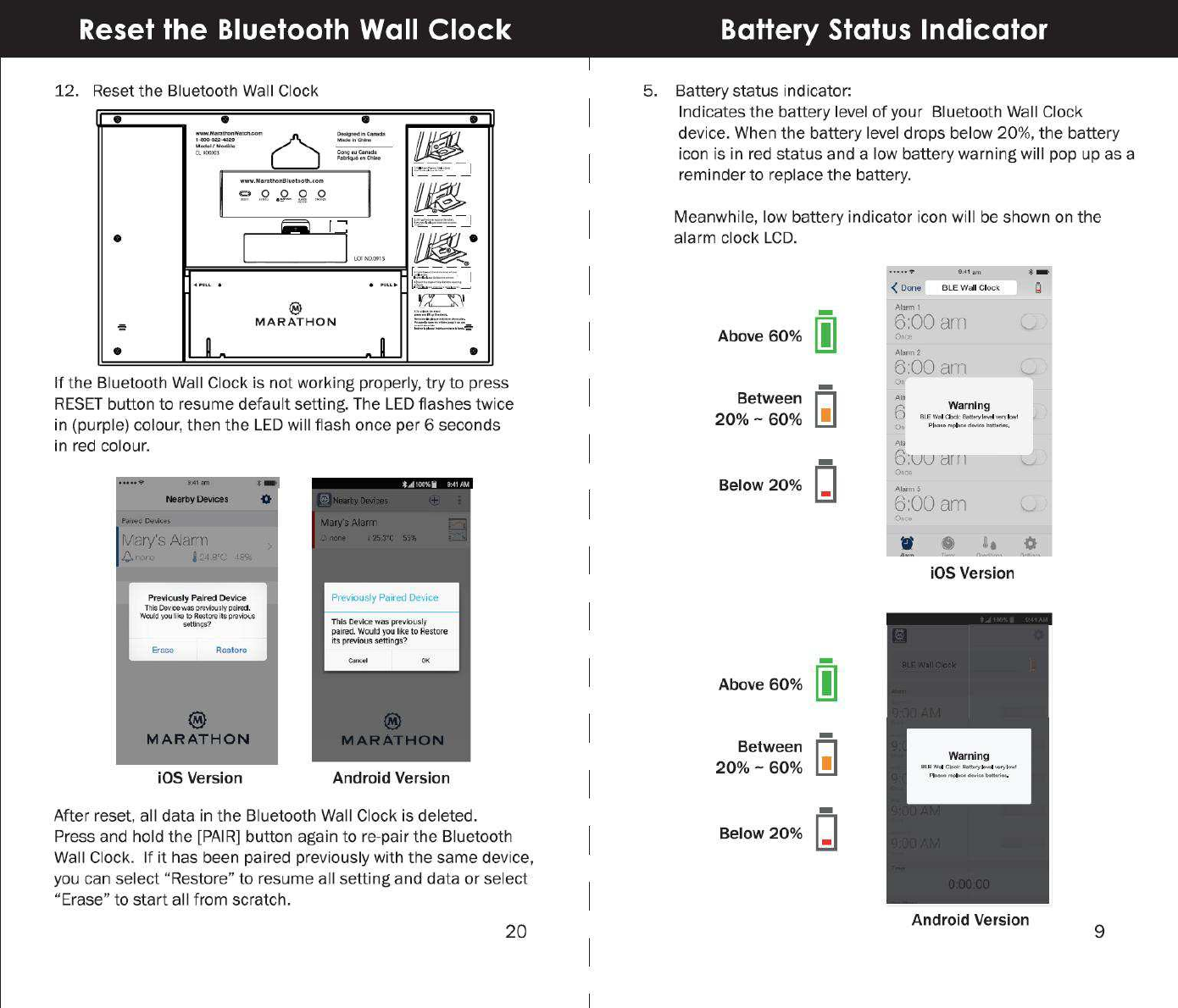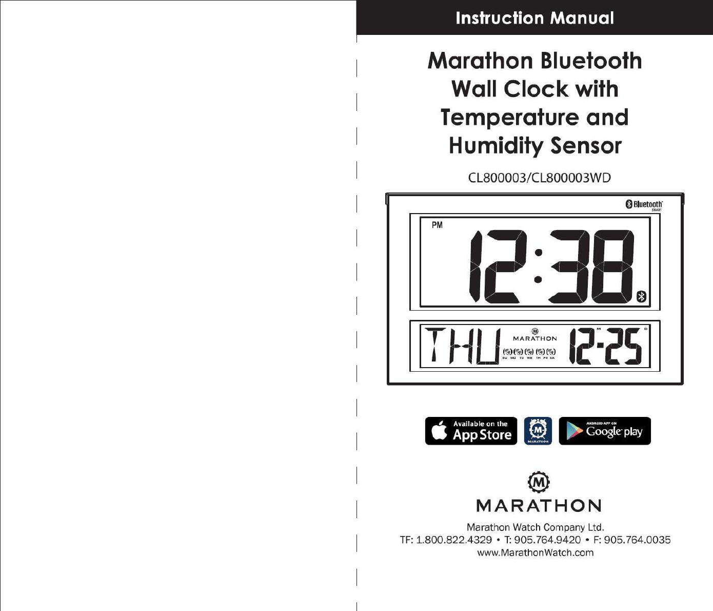 Marathon Watch CL800003 Wall Clock with Temperature and Humidity Sensor User Manual 1