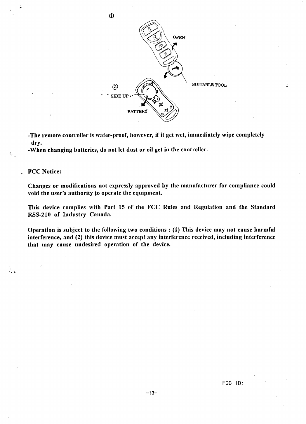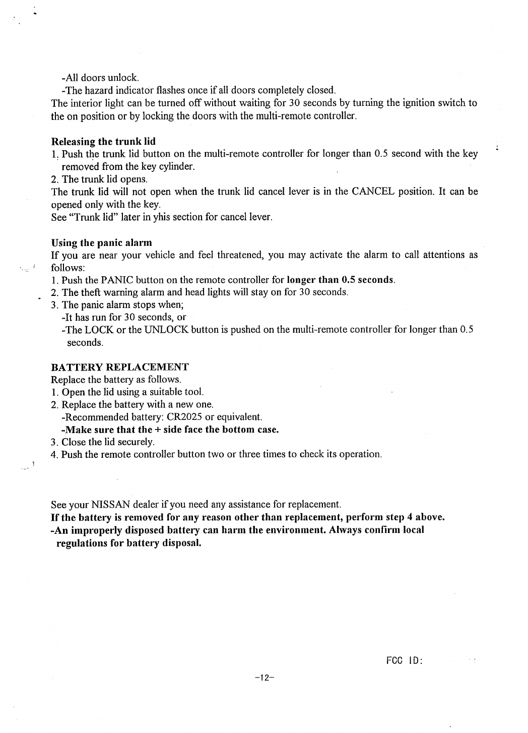 Calsonic Kansei Corporation Automotive Security Transmitter user s manual