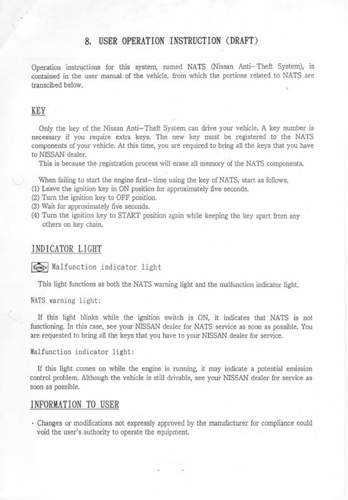 Calsonic Kansei Corporation Vechicle Security Immobilizer System Manual