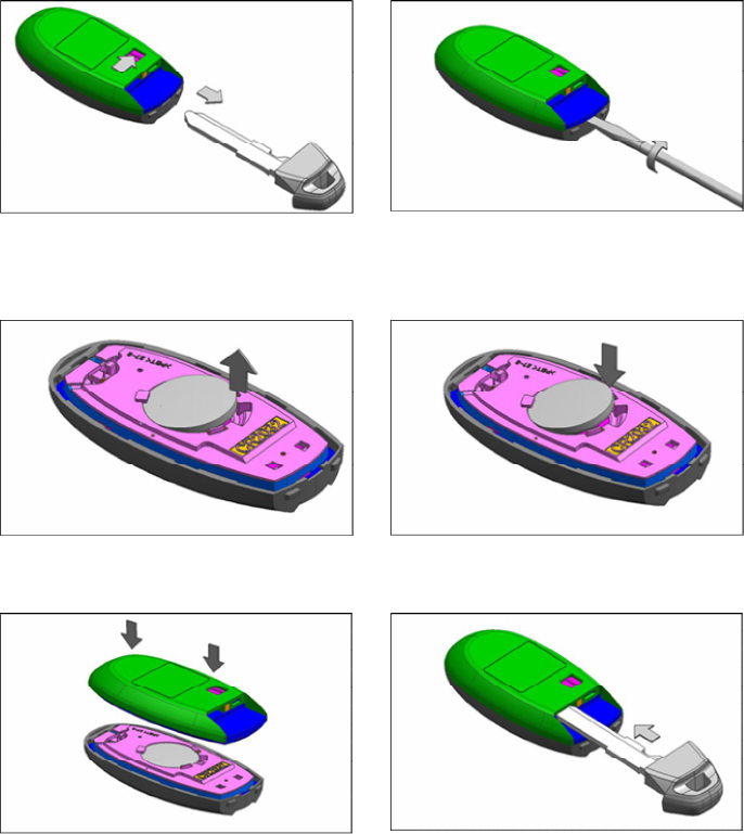 1. Bring out the mechanical key. 2. Insert a flat-blade screwdriver