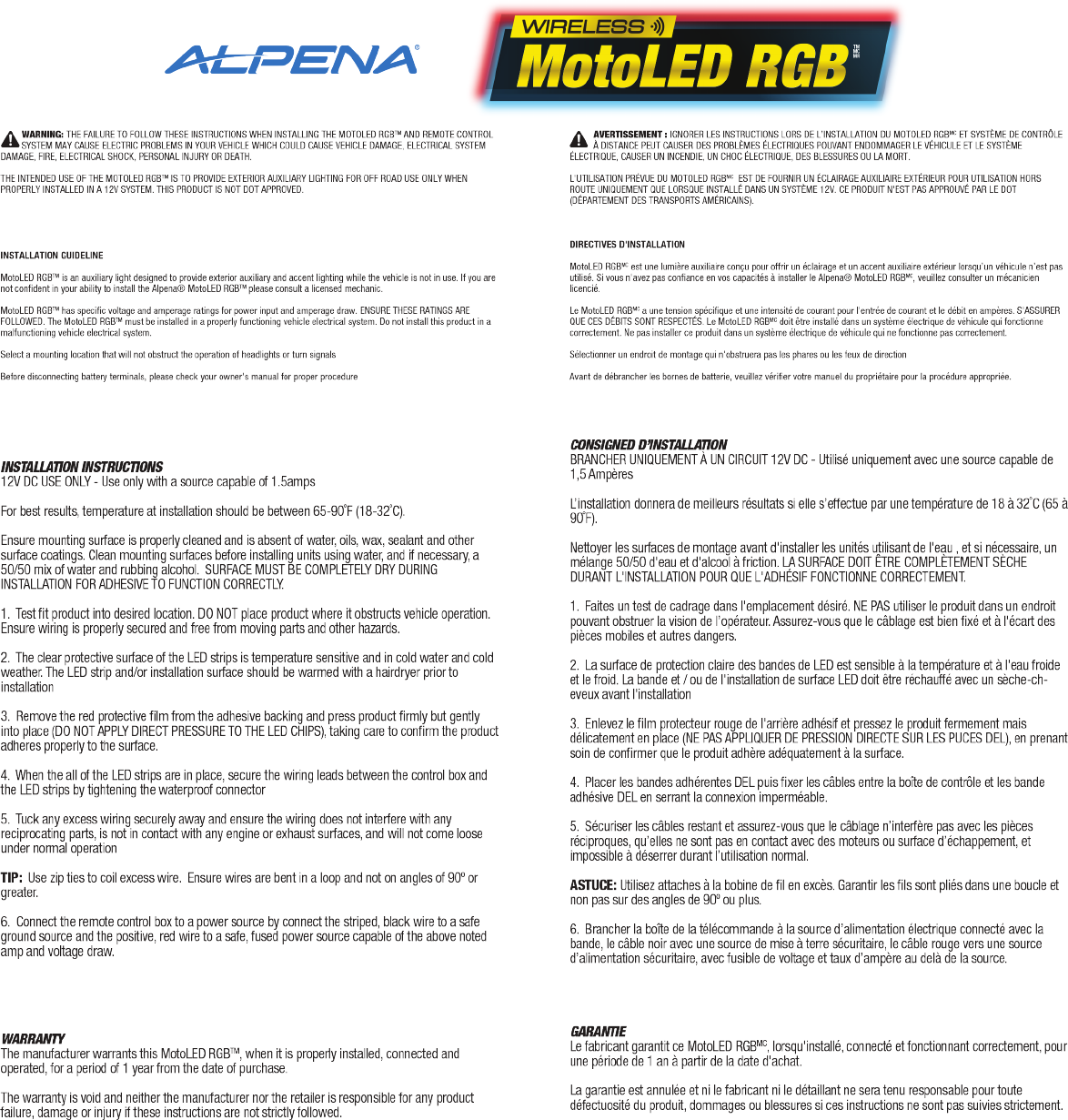MARKLYN CO. INC. MotoLED RGB 77225 MotoLED RGB installation instructions