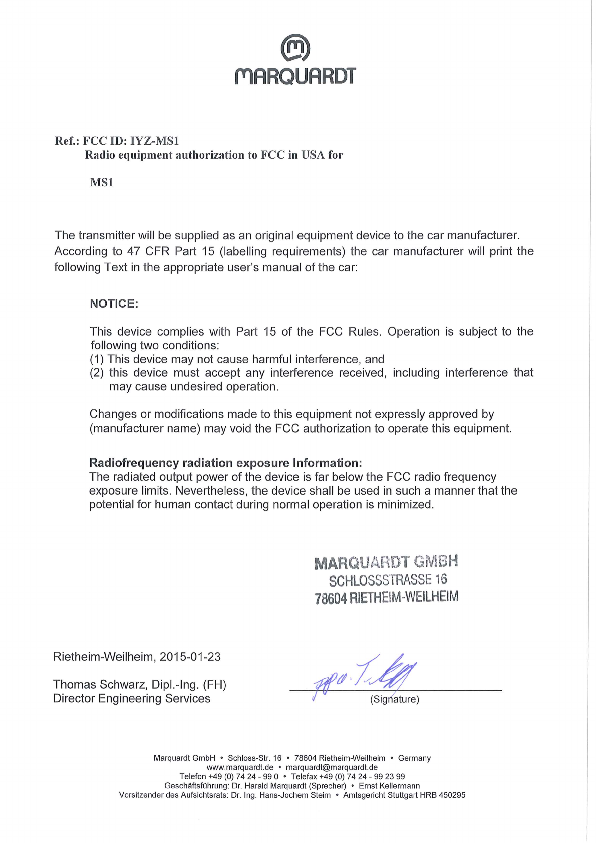 Marquardt MS1 Car Key User Manual UserManualStatement