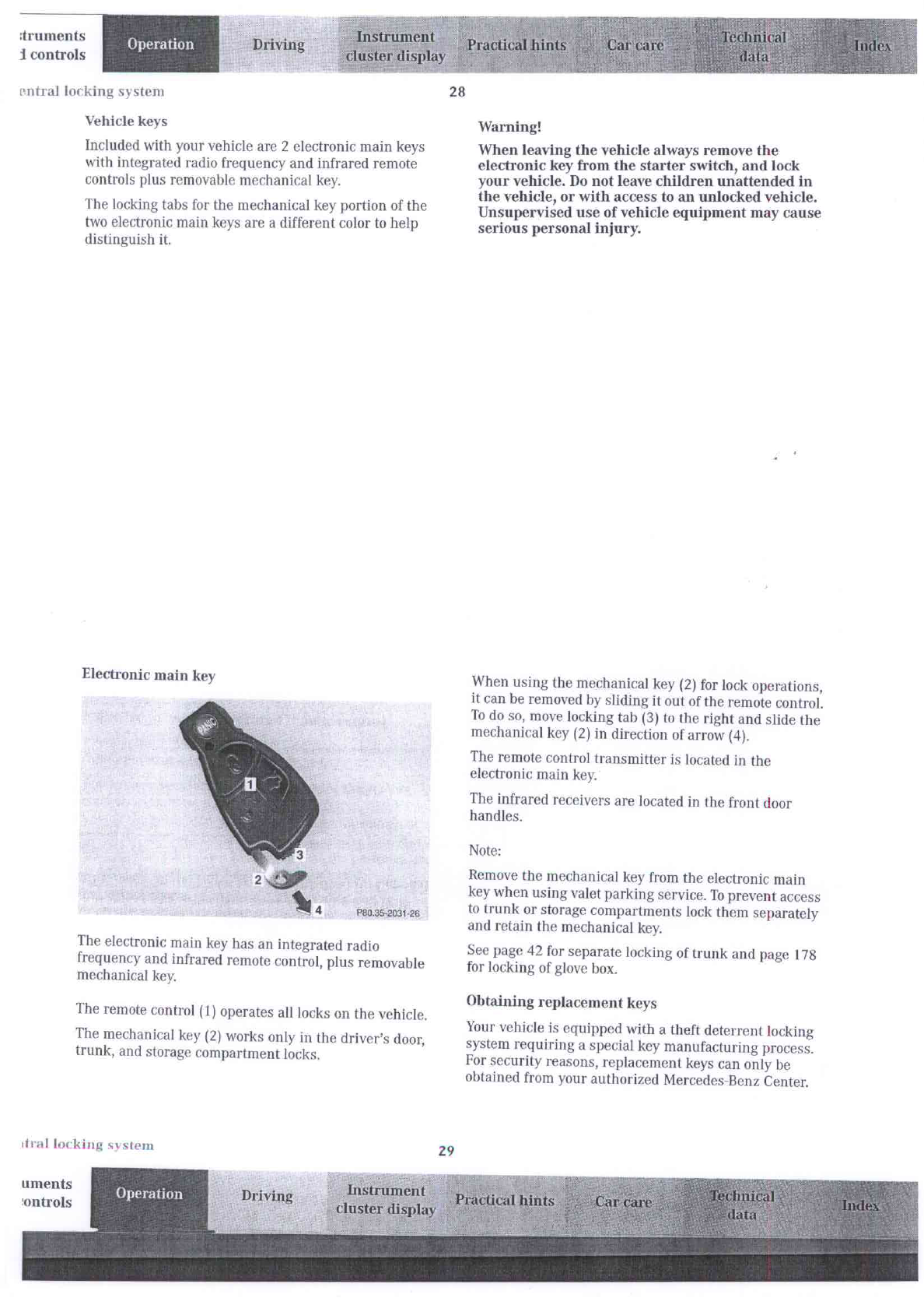 The W2111 key is a component of a driver authorisation system and has the following function: