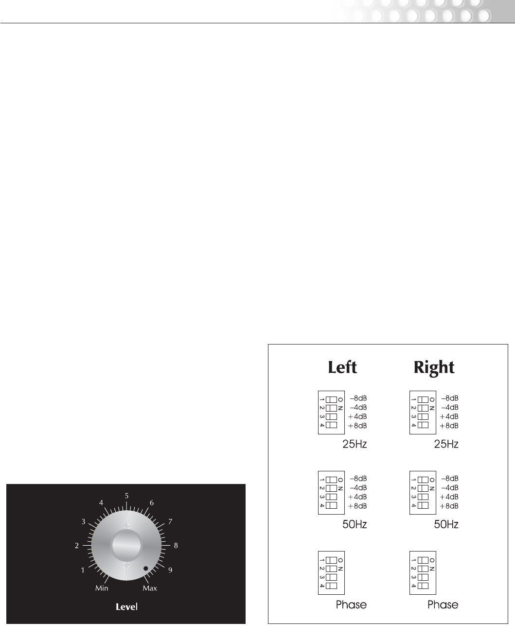 25Hz flip the –4dB or the –8dB dip switches to on.