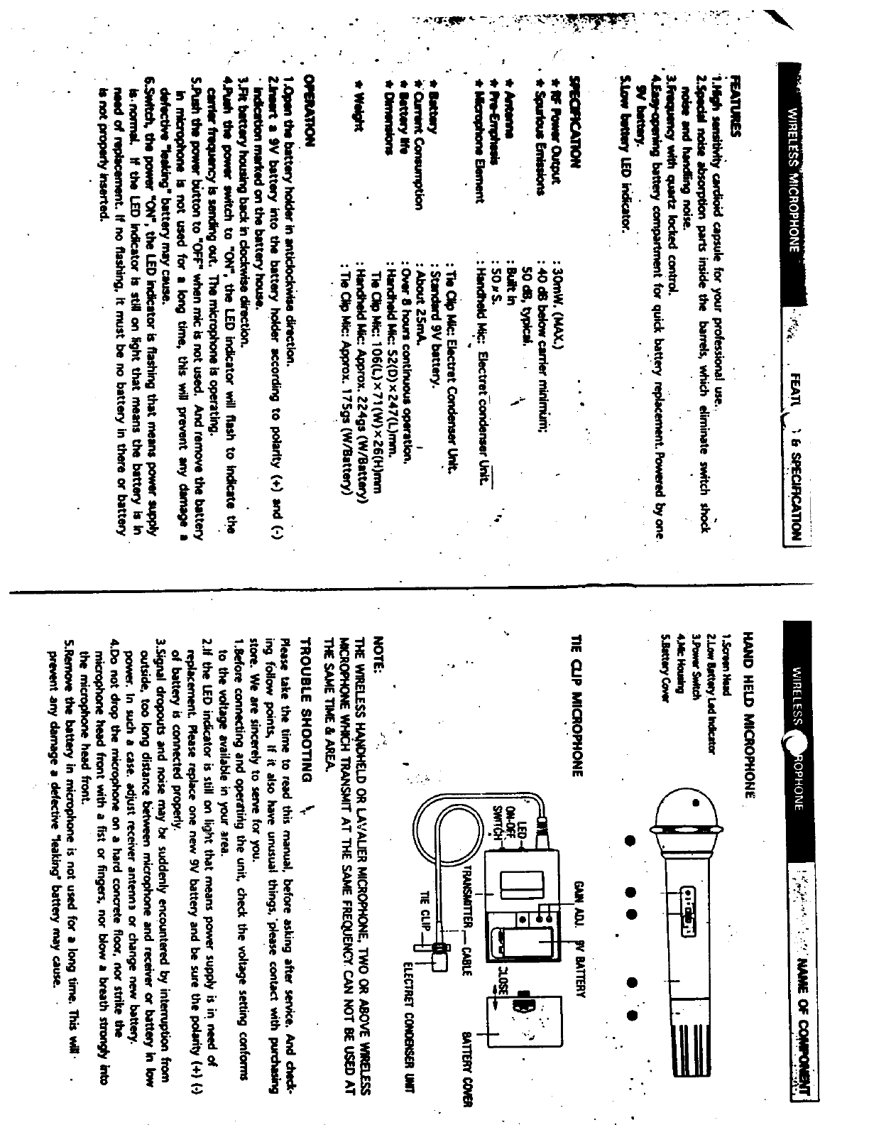 Mascot Electric HH-03M Wireless Microphone User Manual 13410