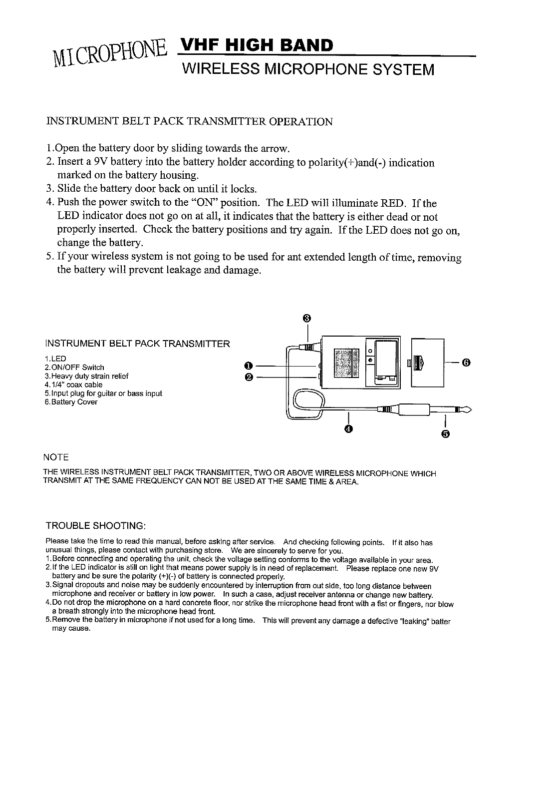 Mascot Electric MX-N15G WIRELESS MICROPHONE User Manual