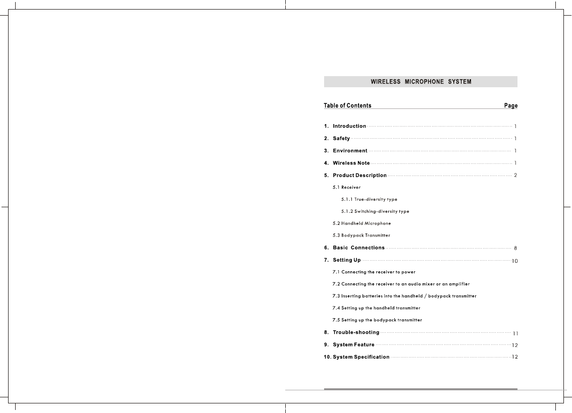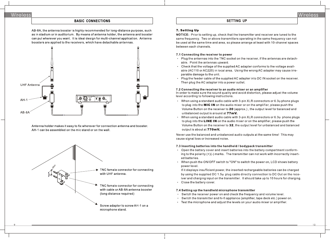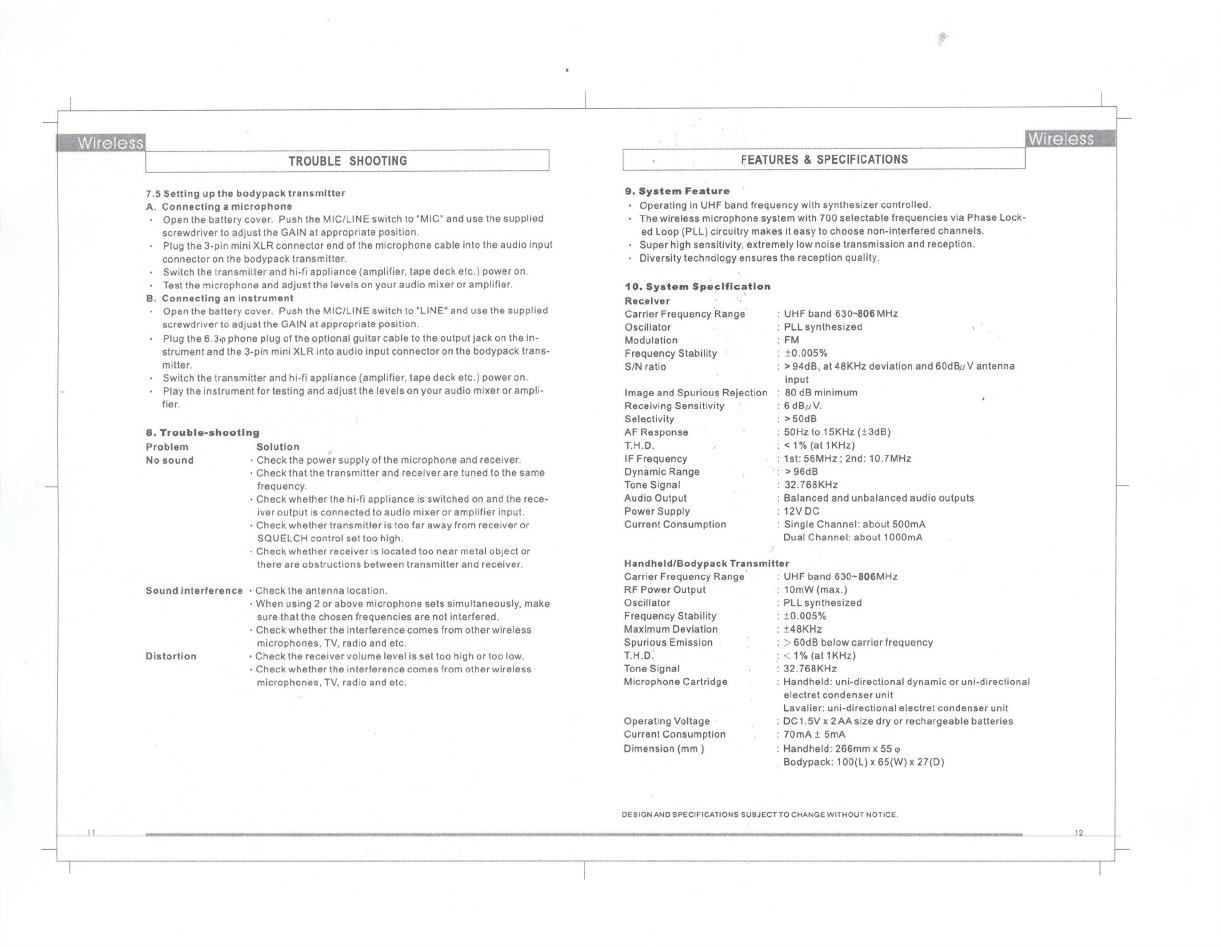 Mascot Electric Co., Ltd. Wireless Handheld Transmitter Microphone Users Manual