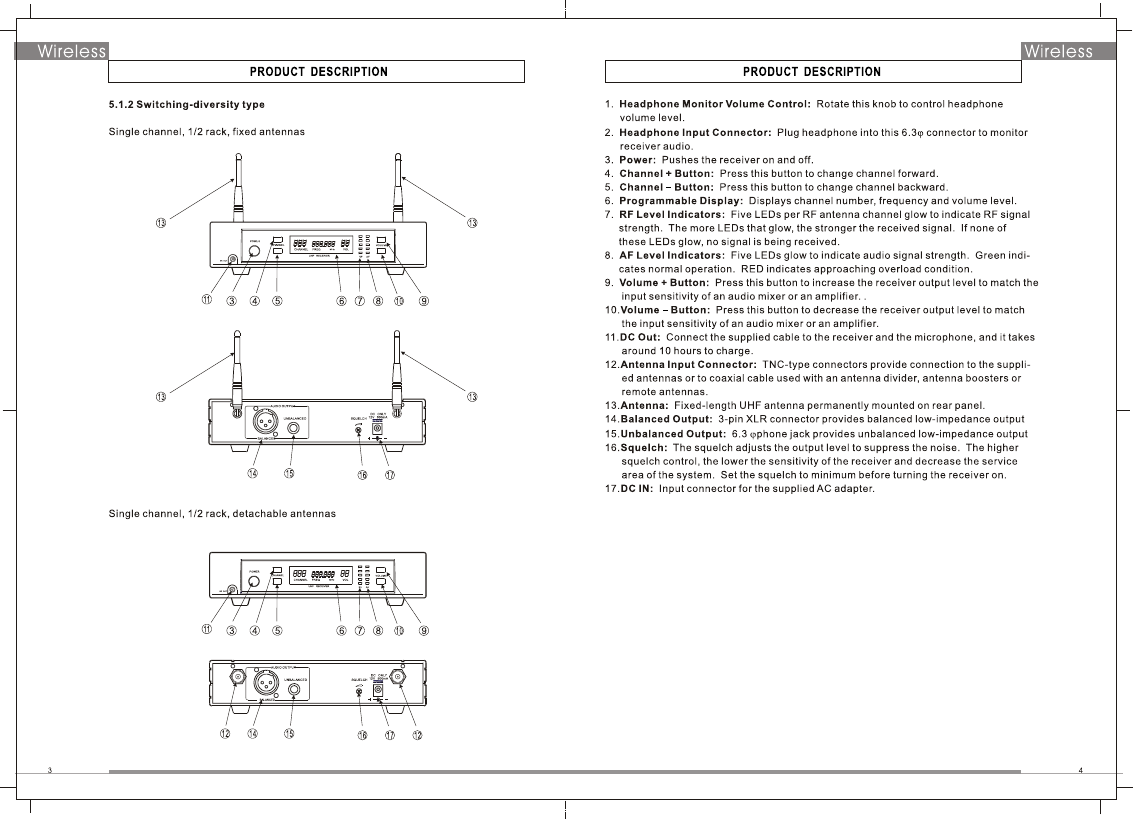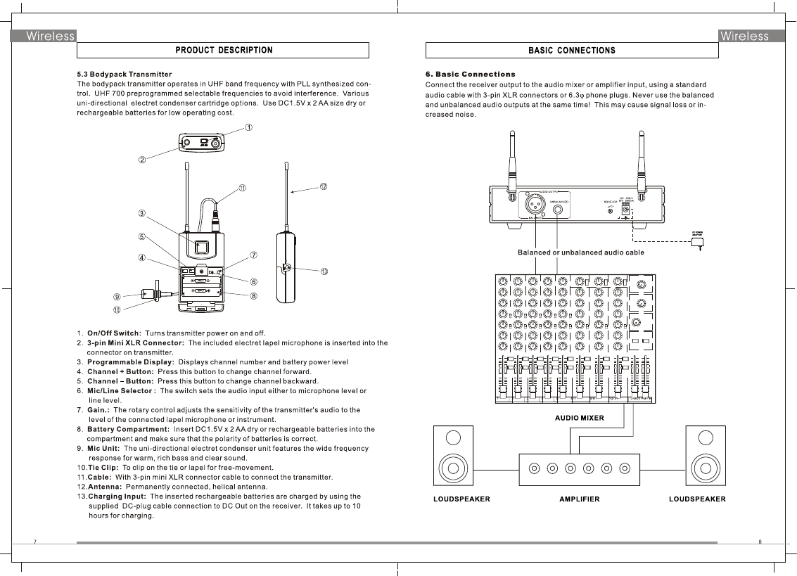Mascot Electric UF-141 Wireless Handheld Transmitter Microphone User Manual