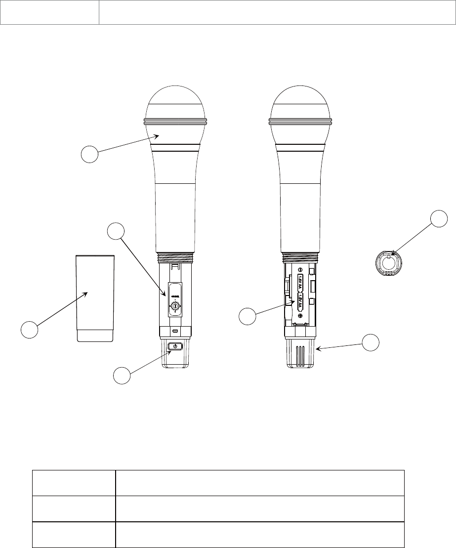 1. Power / MUTE Button: Press for 2 seconds to power the microphone on or off. With the