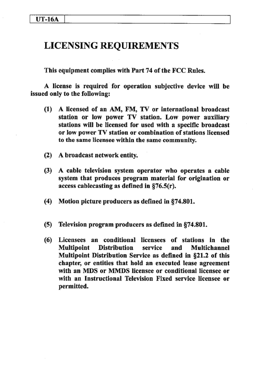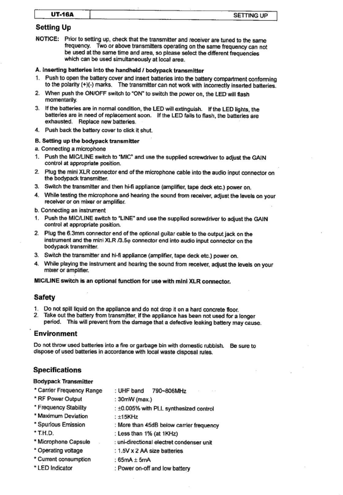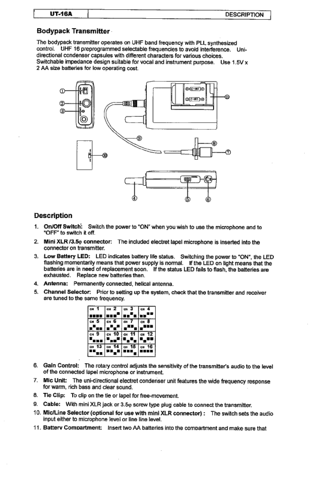 Mascot Electric UT-16A Wireless Microphone User Manual M1274985