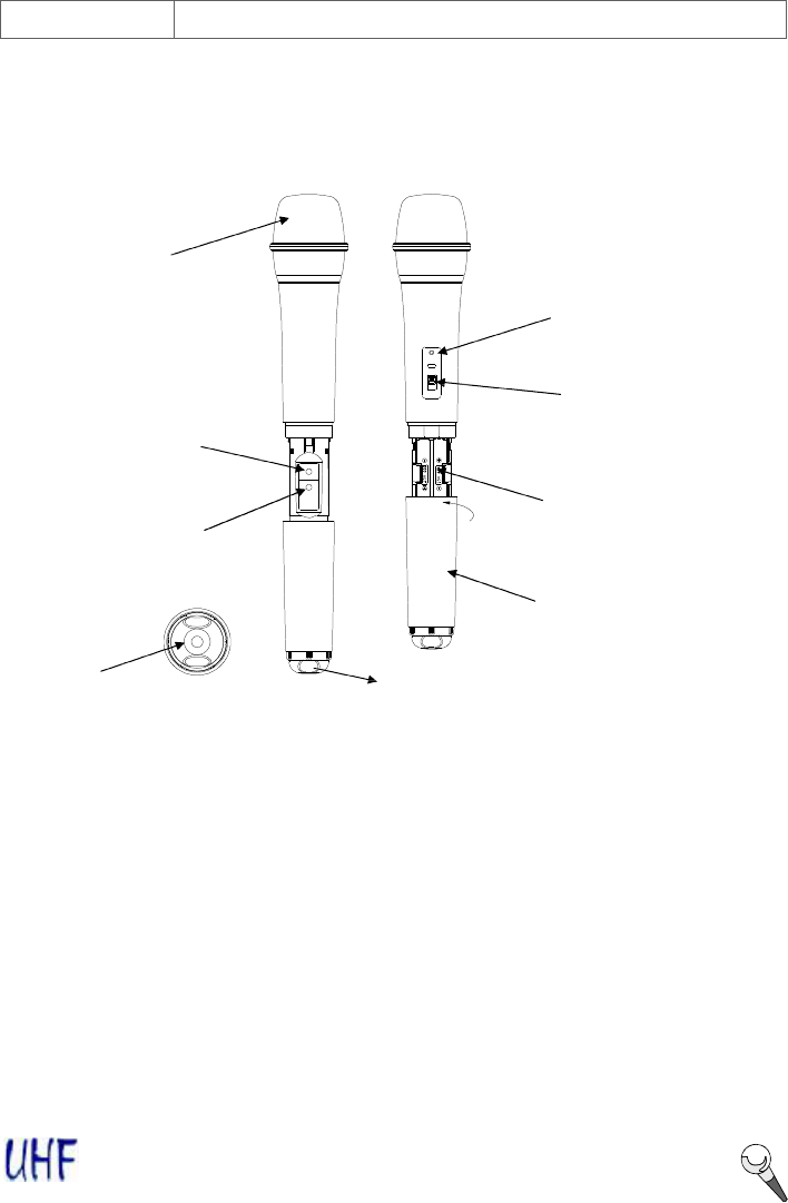 The handheld microphone operates in UHF band frequency with PLL synthesized control. UHF