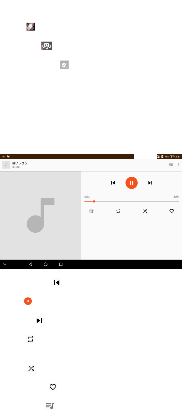 Shuffle:Press the [ ] button on screen to select shuffle songs or turn off shuffle.