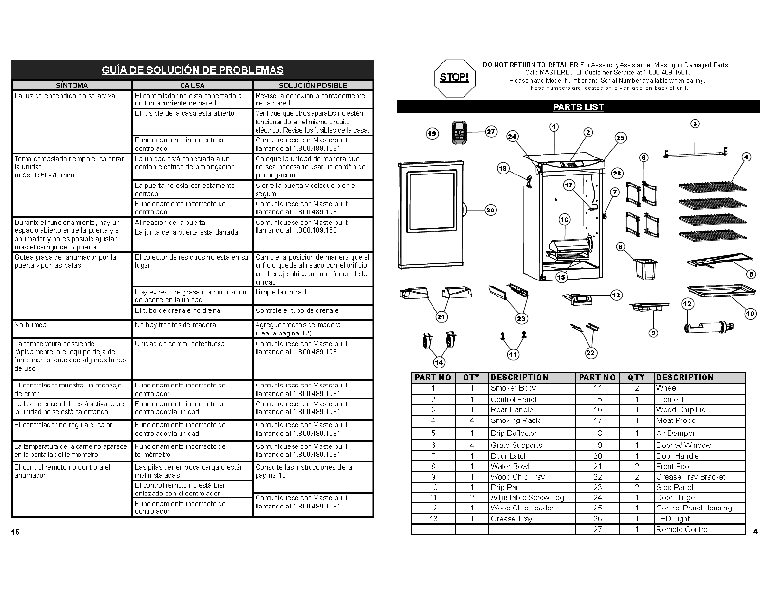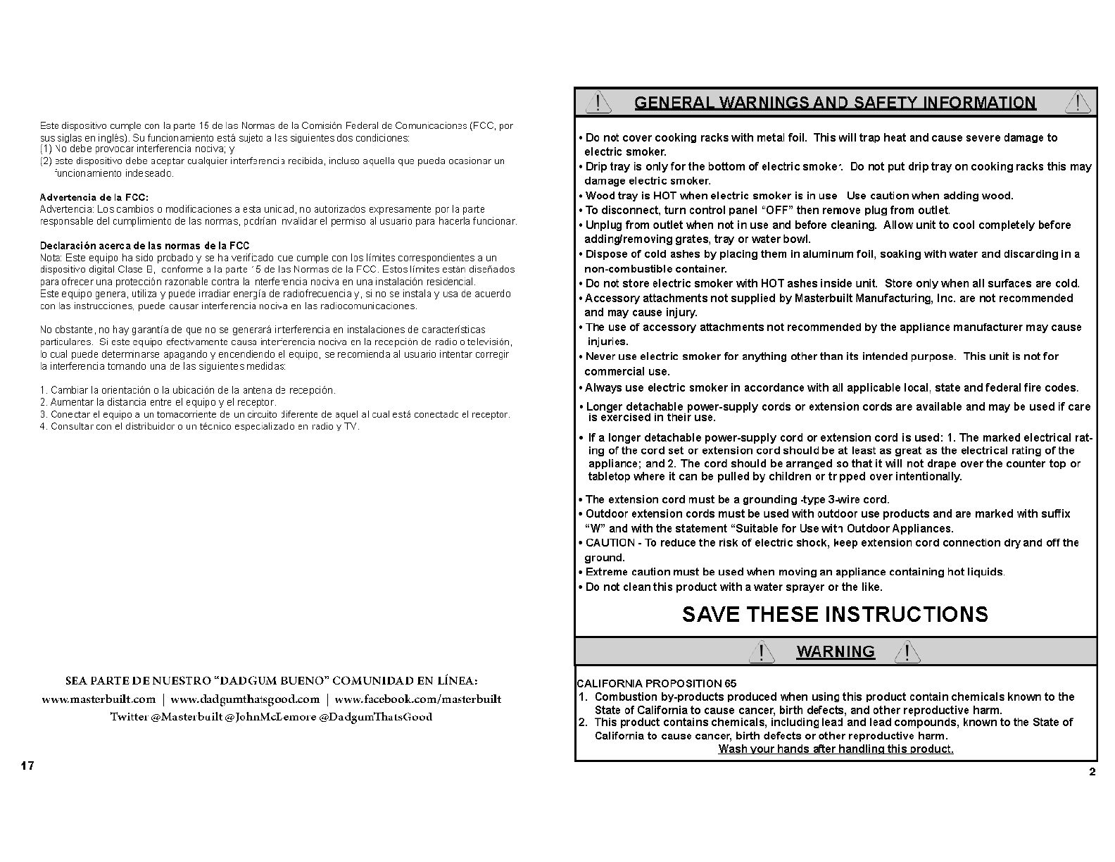 Masterbuilt ESQ-3040R6 Black Electric Smoker User Manual 20070312 ES30BSW2 IMTL 101013 23SS