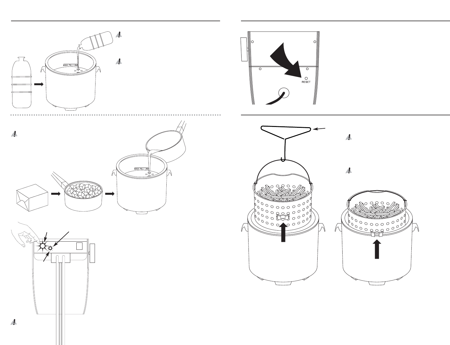 • Do not overfill past fill line. Boiling oil or