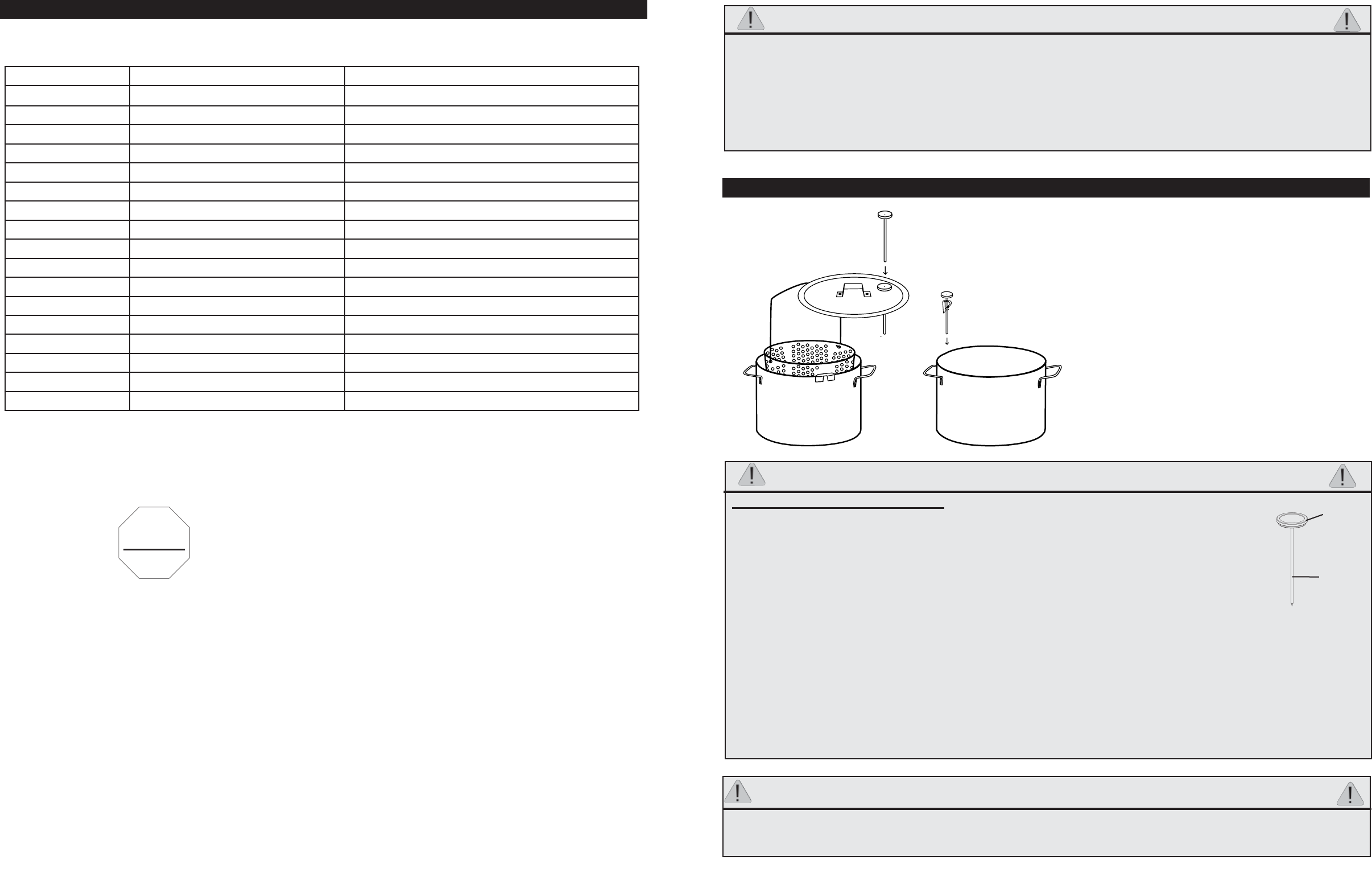 • Never overfill the cooking pot with oil/grease or water. Follow instructions in this manual for establishing