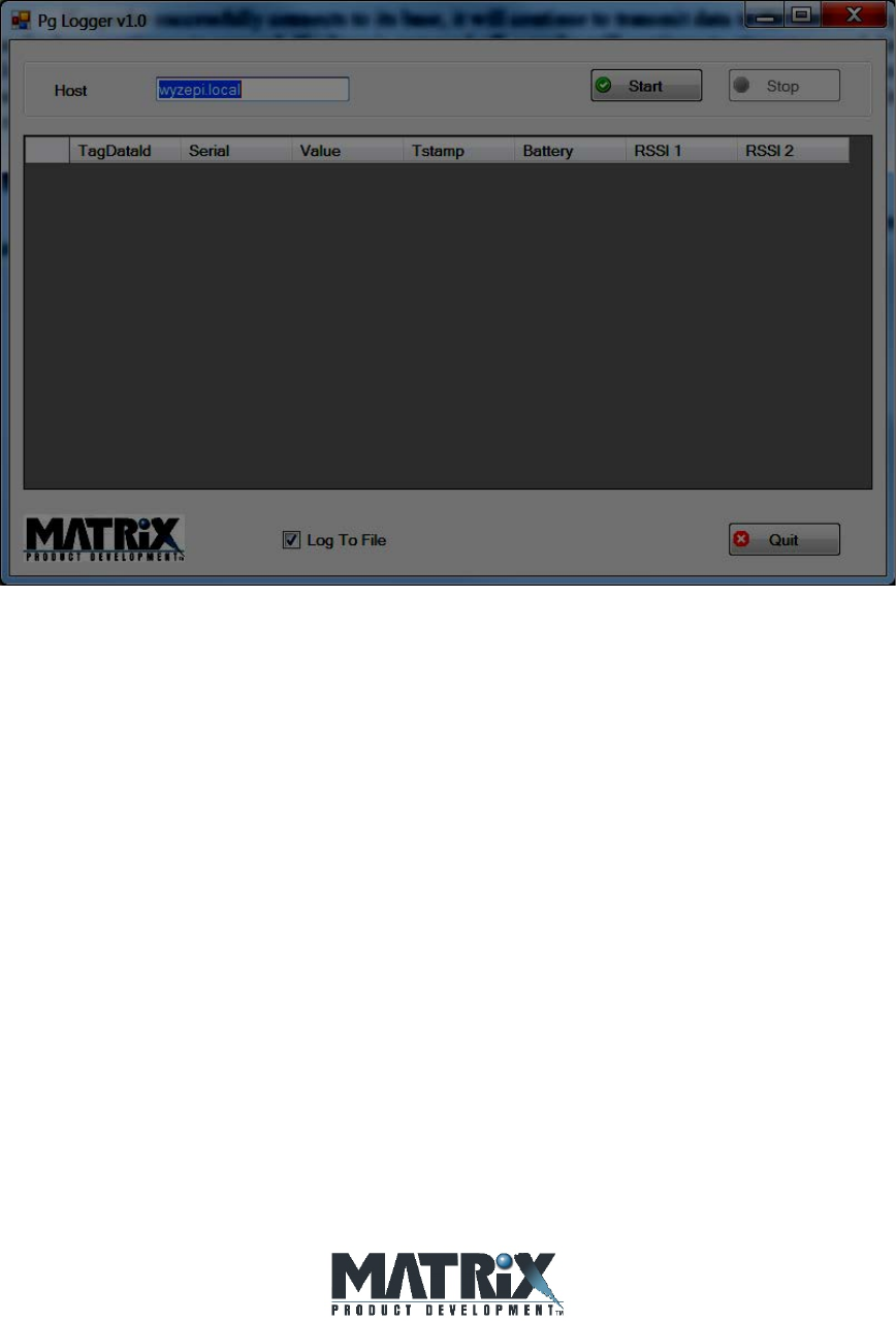 To stop logging data, the stop button can be clicked. The “Quit” button will close the pgLogger window