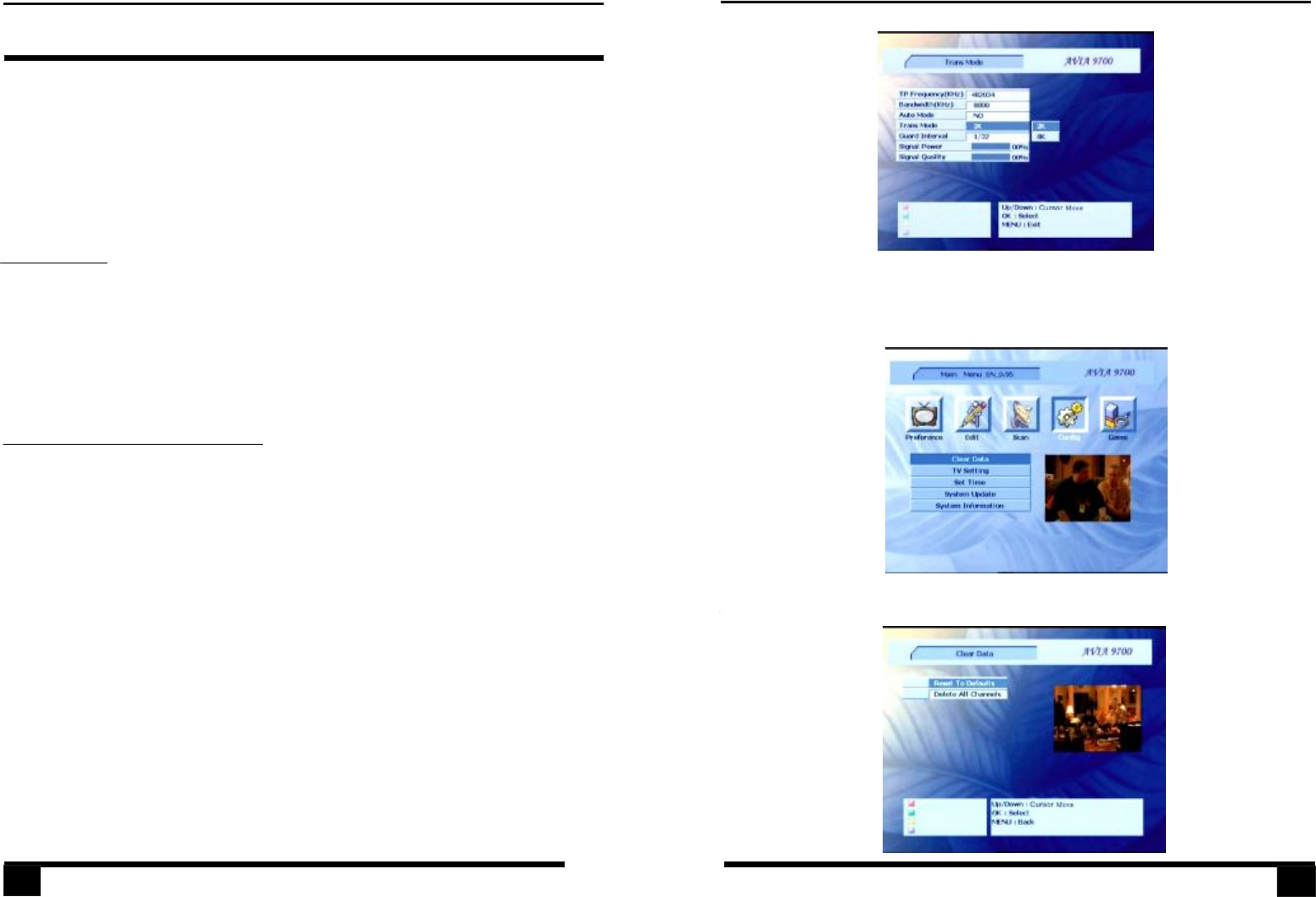 Theunitcontainsdifferentsettingmenus.