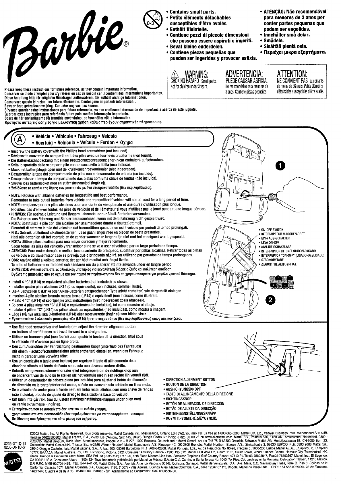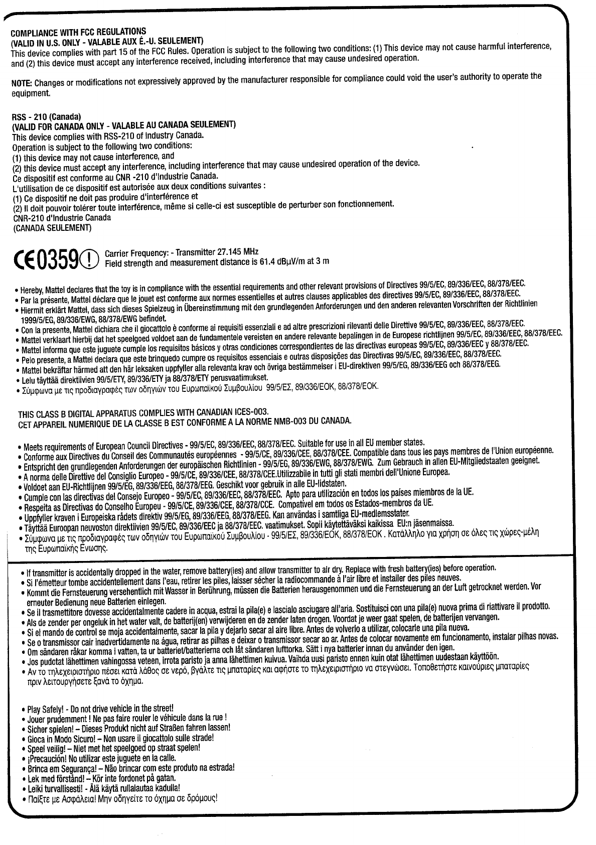 Mattel Asia Pacific Sourcing B0233-03A2T RC Car User Manual