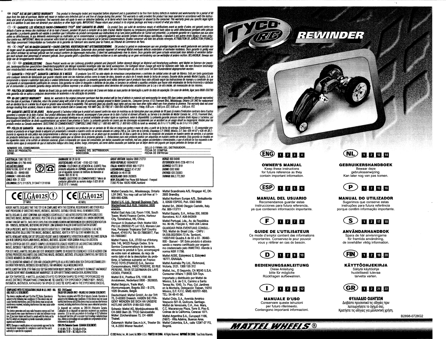 Mattel Asia Pacific Sourcing B2906-03A4R RC Car User Manual 1