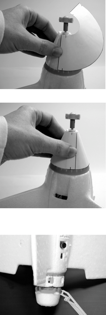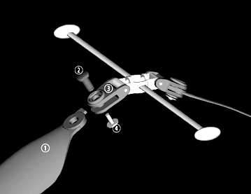 sure that the tip hoops are facing upward as shown (refer to the other rotor blade as a guide).