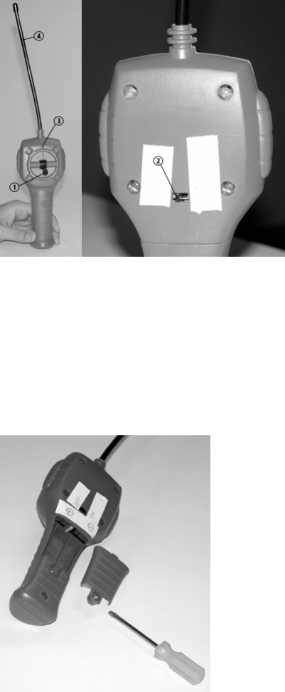 (1) To install transmitter battery, unscrew and open battery cover as shown. (Screwdriver not