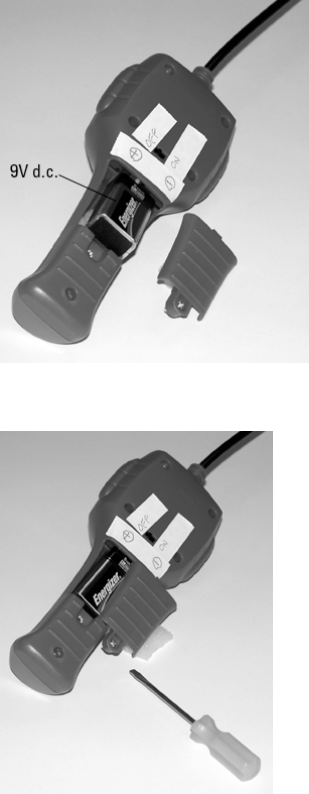 (2) Install one 9V battery with polarity (+/-) as shown inside battery compartment.