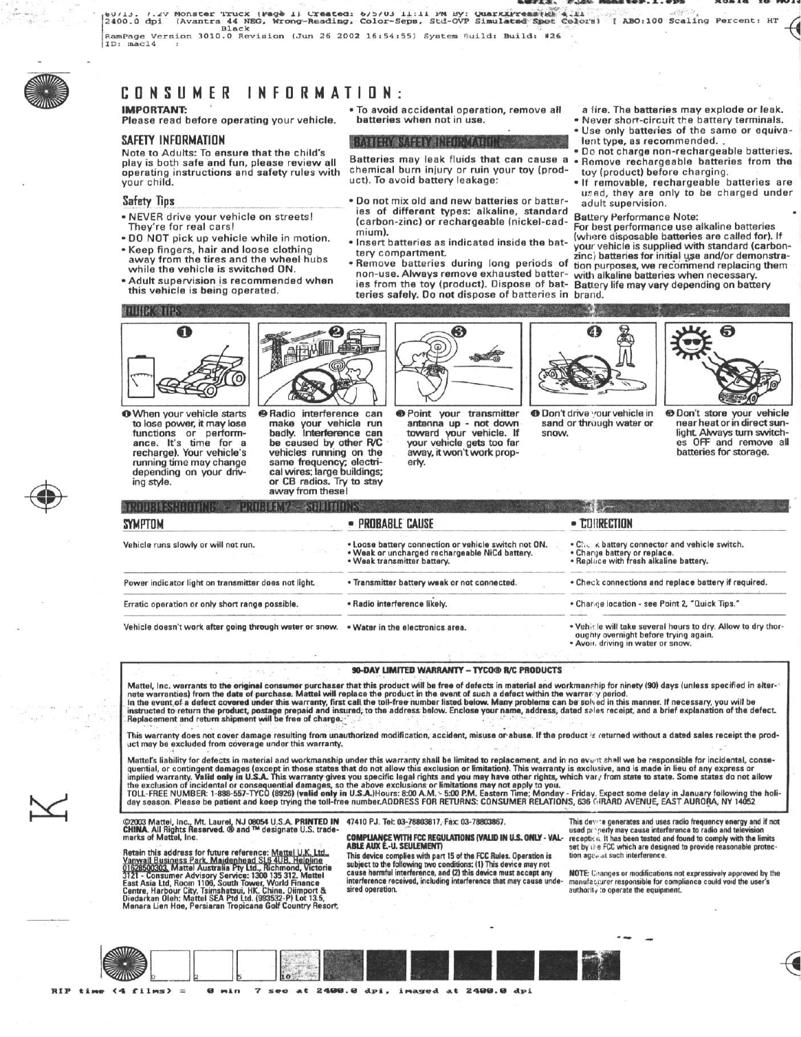 Mattel Asia Pacific Sourcing B9527-03A4R 1/6th Maximum Destruction User Manual Manual