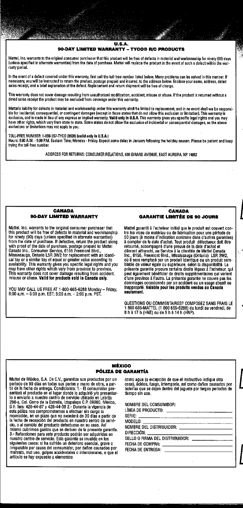 Mattel Asia Pacific Sourcing C0640-03A4T 1/64 Hot Wheels R/C User Manual manual